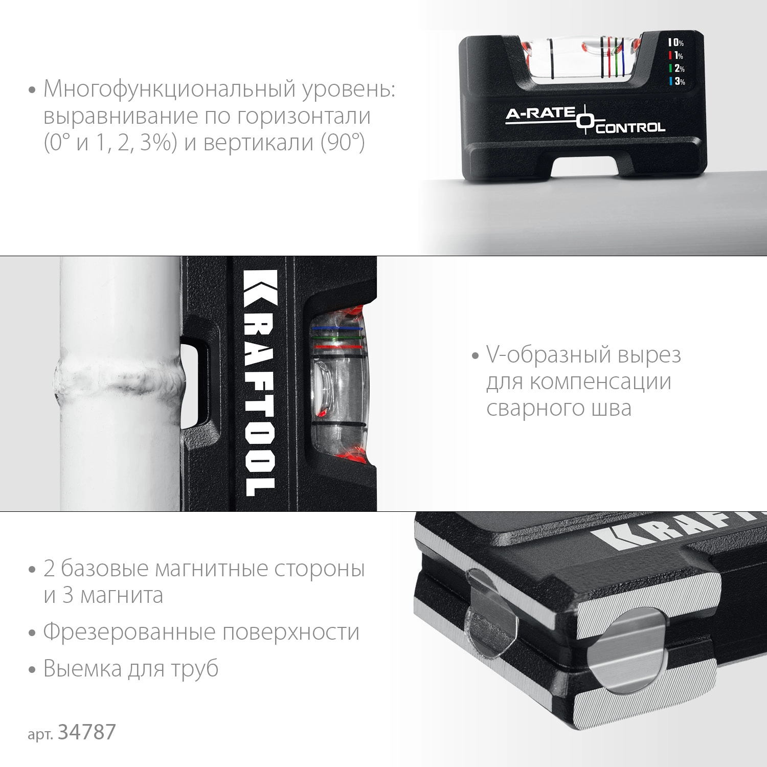 ПроизводителиУровень литой магнитный компактный 76 мм 5-в-1 (34787) KRAFTOOL