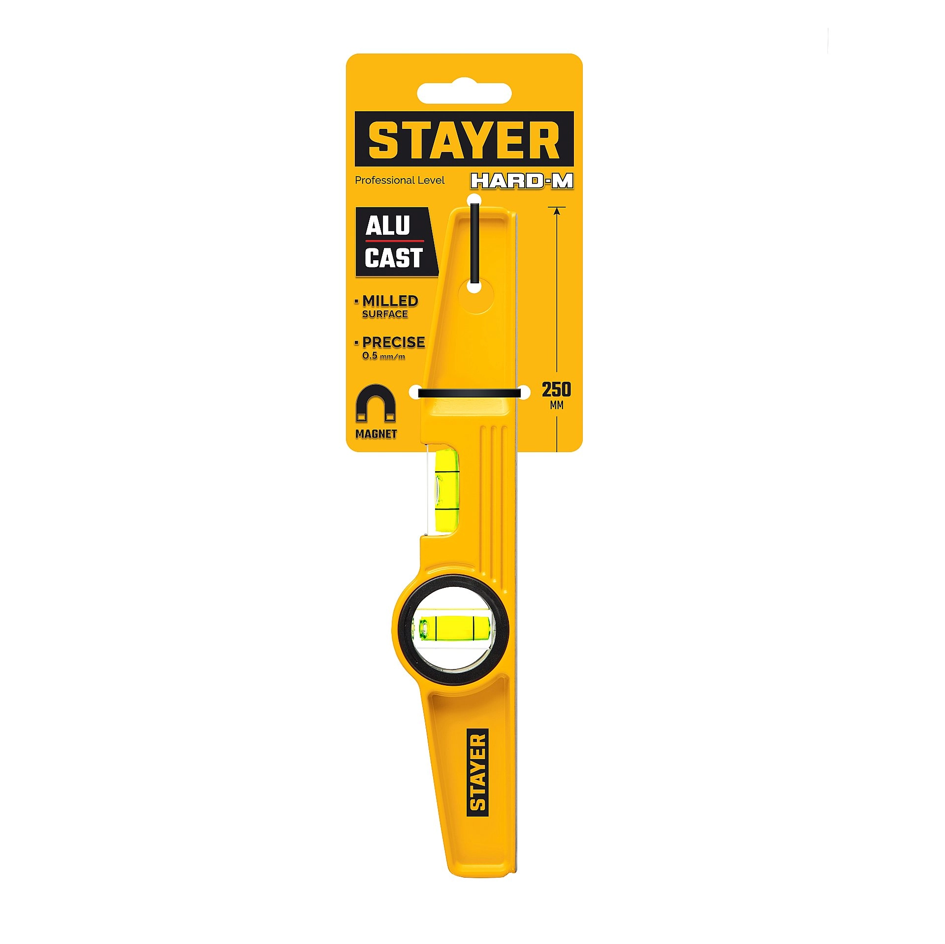 Бренд: STAYERЛитой уровень с мощными магнитами, фрезерованной базовой поверхностью и точными глазками