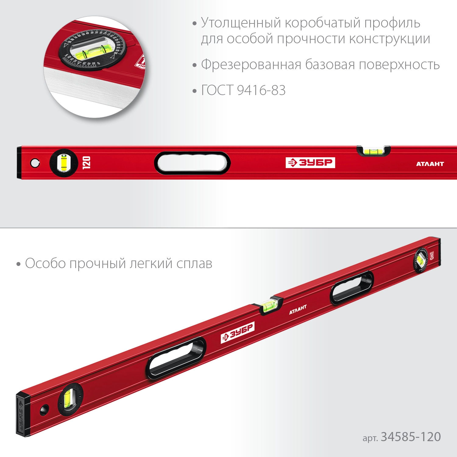 ПроизводителиУровень строительный, 120 см. (1.0 мм/м, 3 гл., фрезер.), быт. (34585-0120_z01) ЗУБР