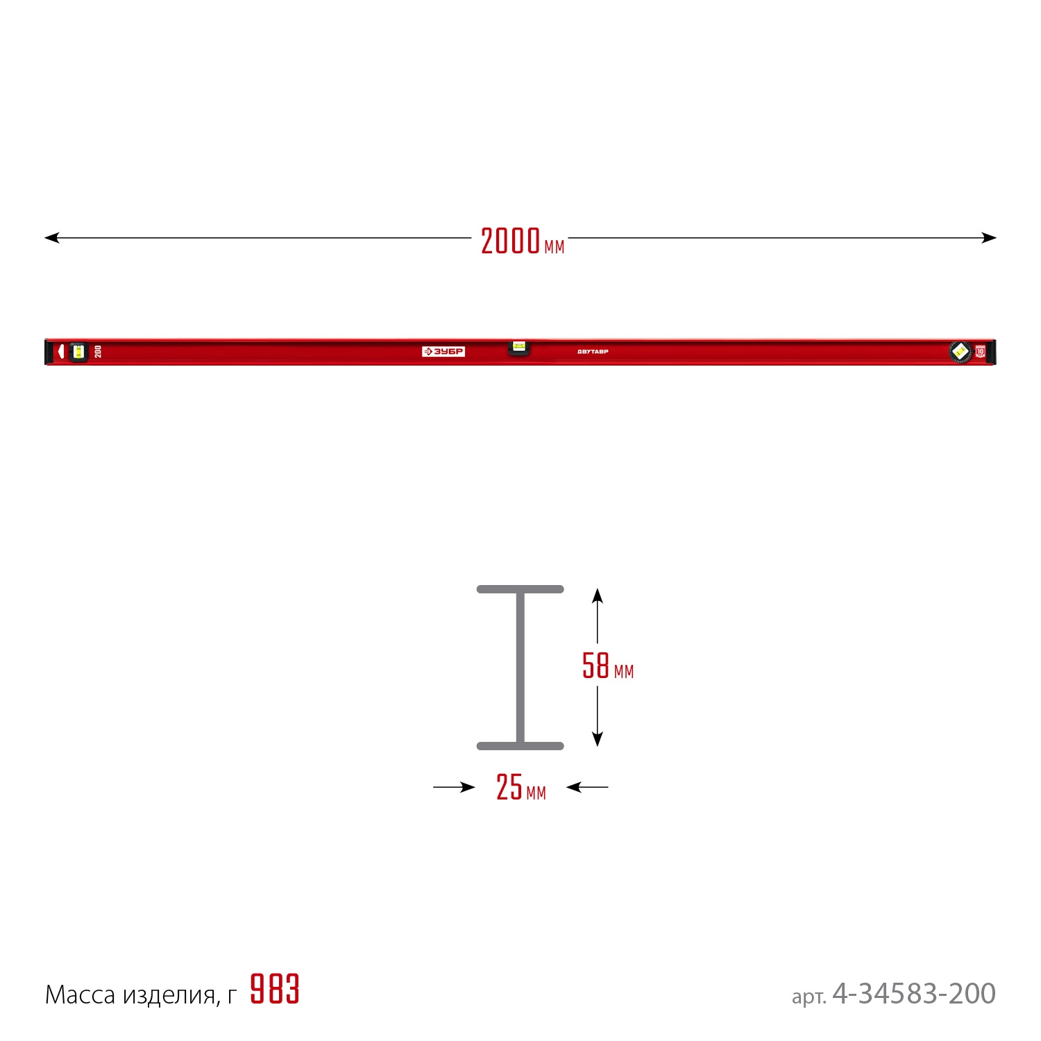 ПроизводителиУровень строительный, 200 см. двутавровый (1.0 мм/м, 3 гл., фрезер.), быт. (4-34583-0200_z01) ЗУБР