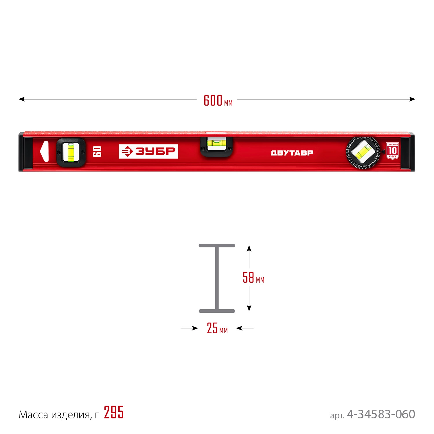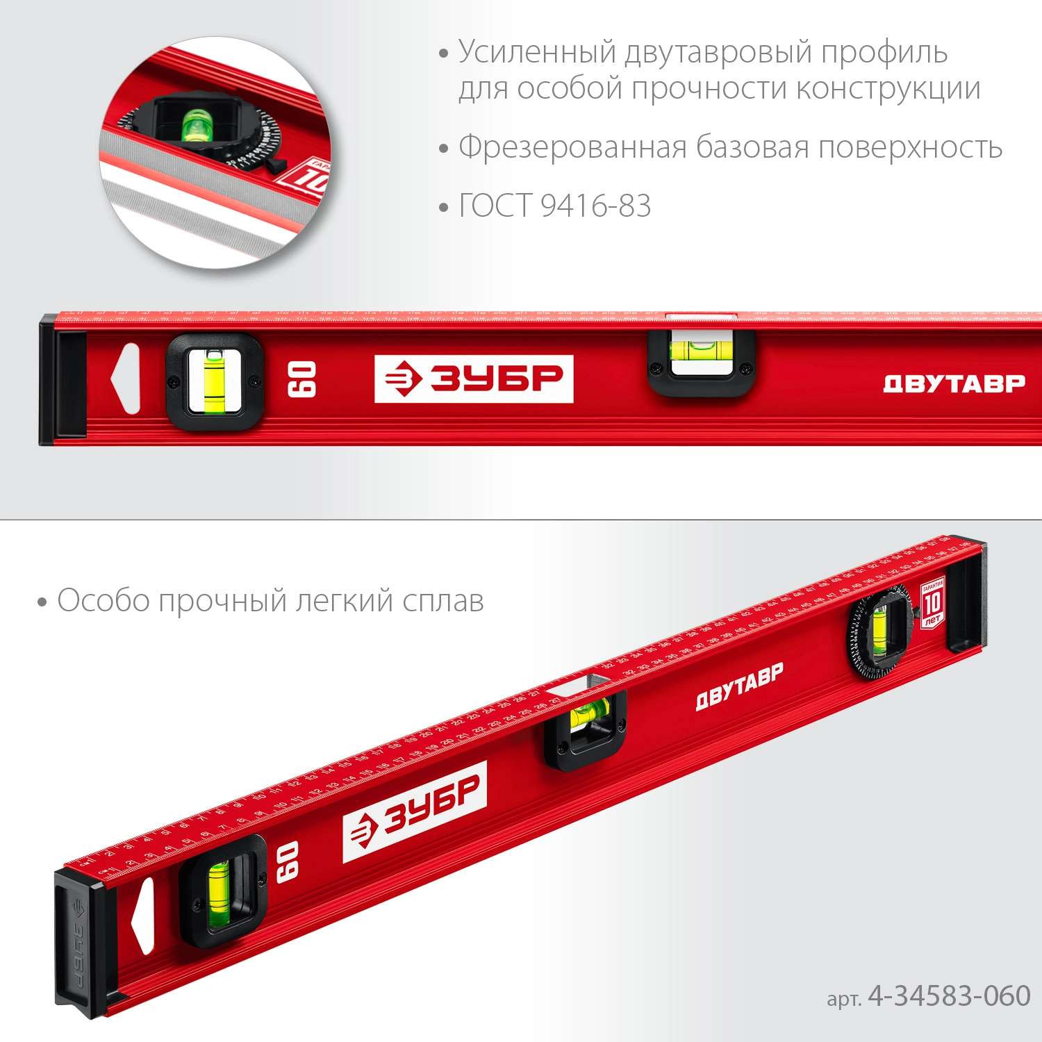 ПроизводителиУровень строительный, 60 см. двутавровый (1.0 мм/м, 3 гл., фрезер.), быт. (4-34583-060_z01) ЗУБР