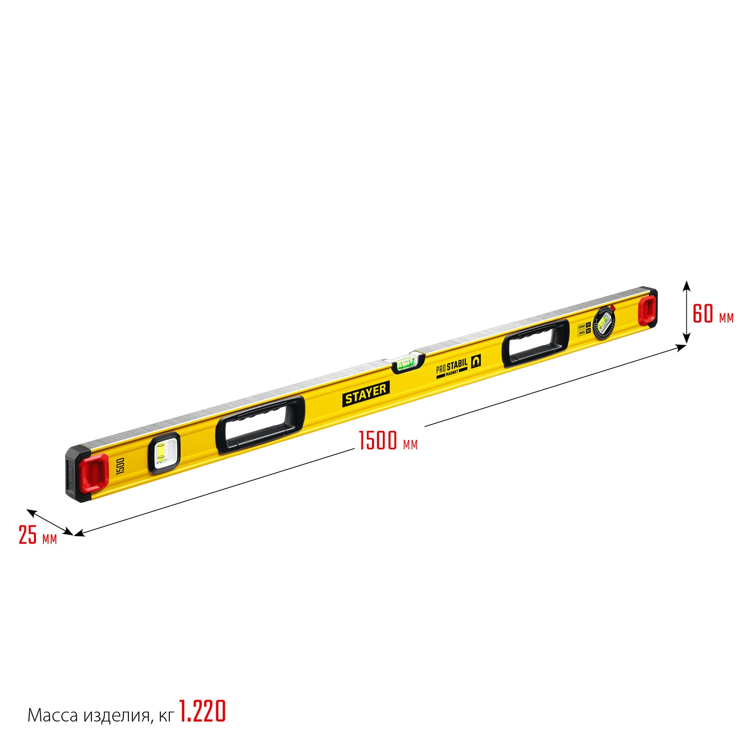 ПроизводителиУровень строительный, 150 см. (0.5 мм/м, 3 гл., фрезер.), магн. "ProStabil Magnet" (3480-150) STAYER