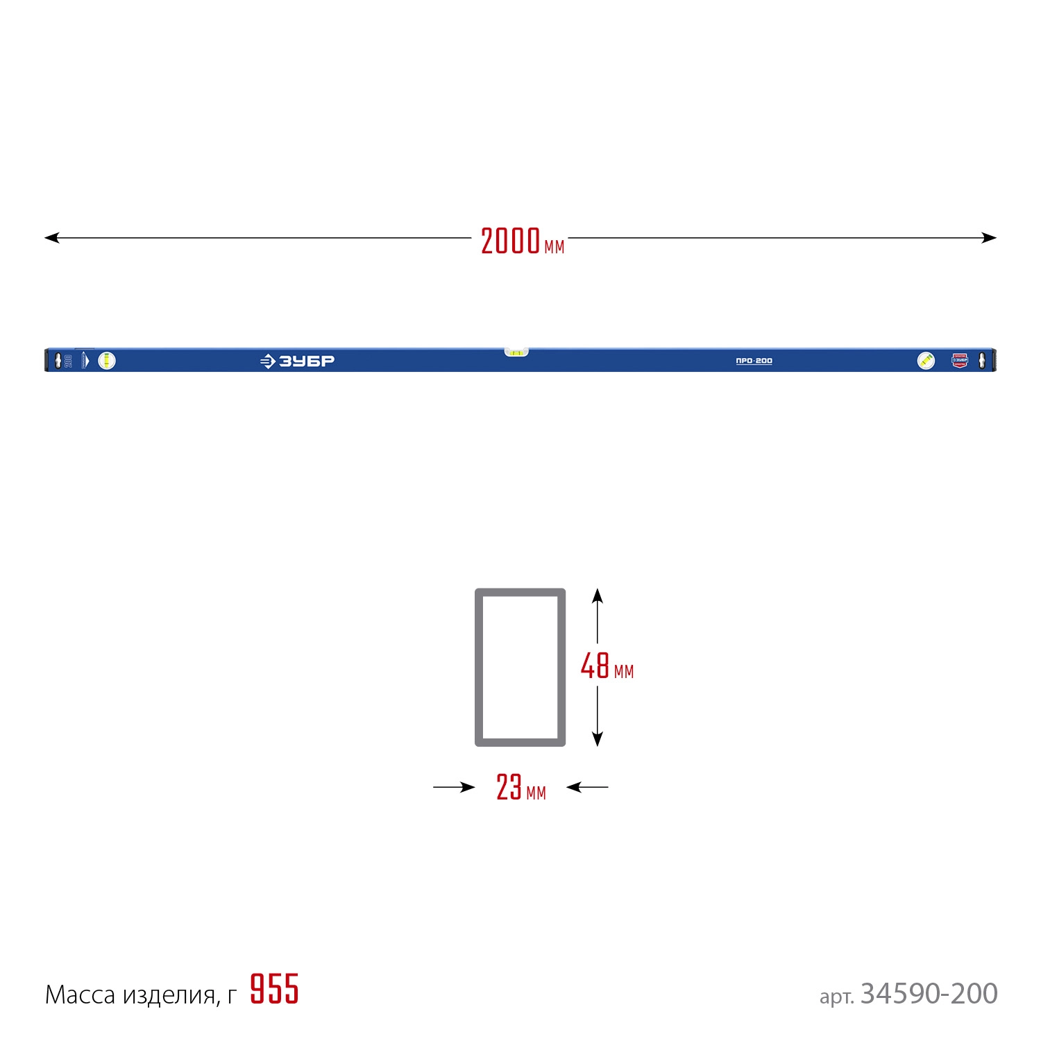 ПроизводителиУровень строительный, 200 см. (0.5 мм/м, 3 гл., фрезер.), магн. (34590-200) ЗУБР