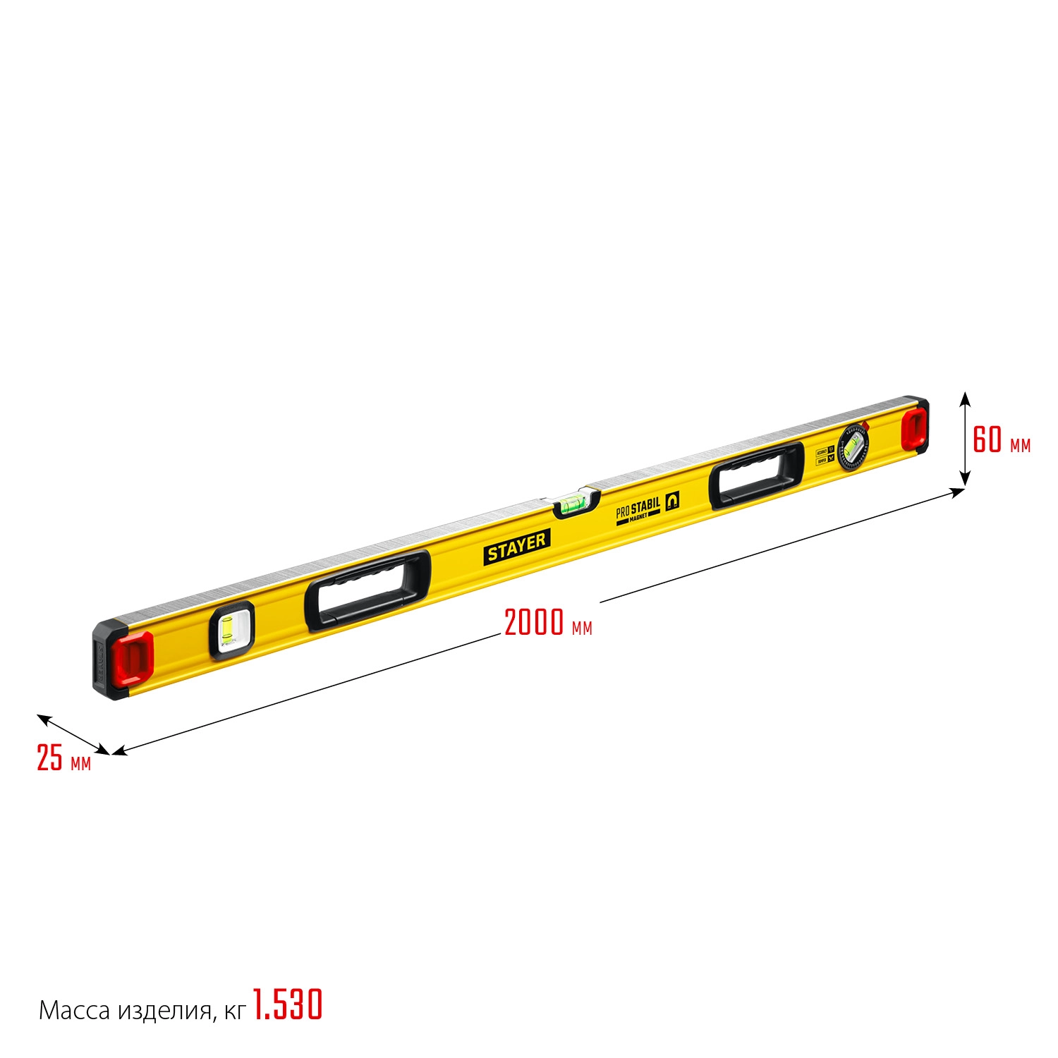 ПроизводителиУровень строительный, 200 см. (0.5 мм/м, 3 гл., фрезер.), магн. "ProStabil Magnet" (3480-200) STAYER