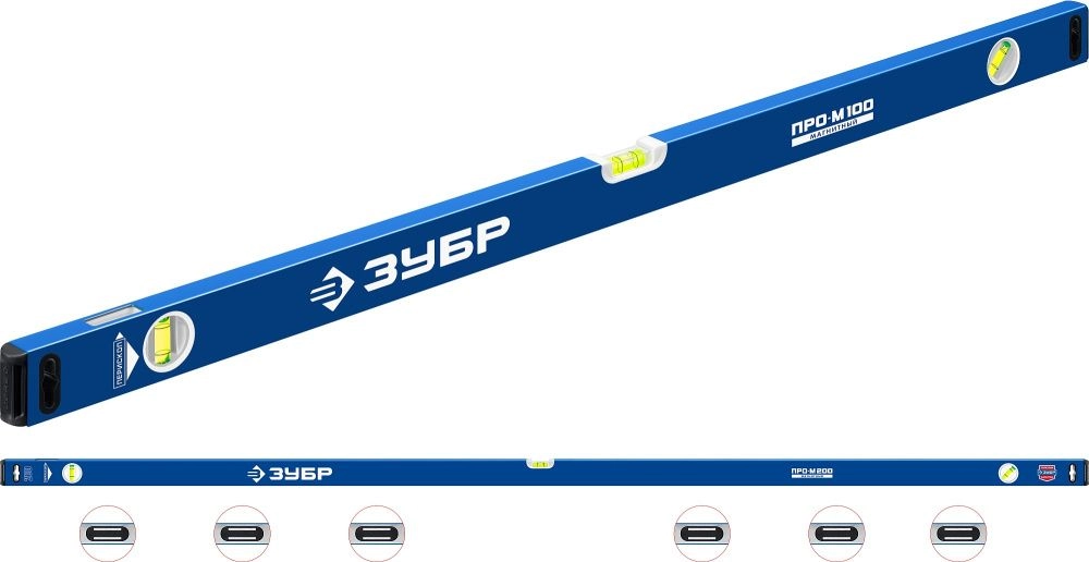 Магнитный усиленный уровень с фрезерованной поверхностью и зеркальным глазком