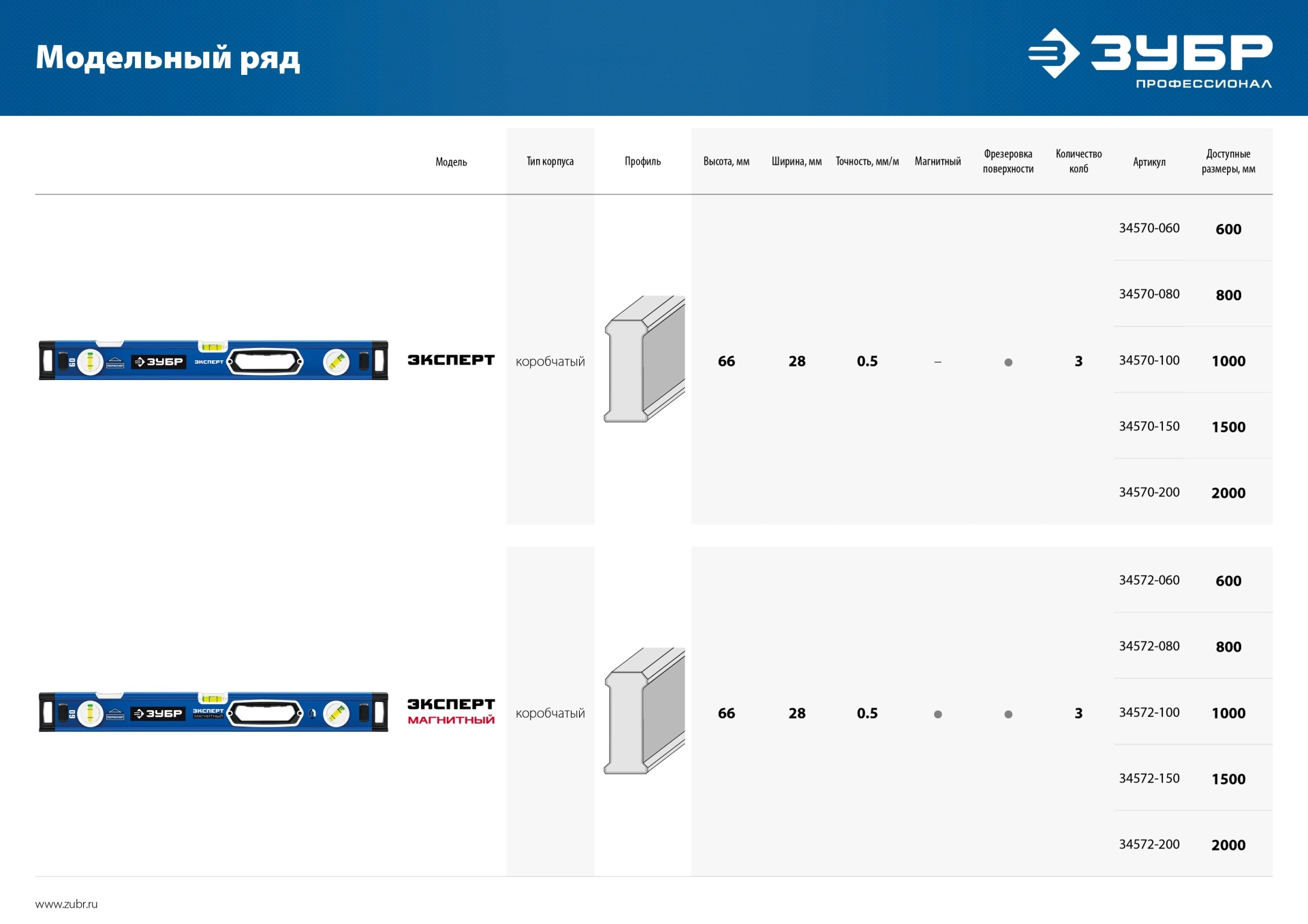 ПроизводителиУровень строительный, 200 см. (0,5мм/м, 3гл., фрезер., авиац.алюм.),магнитный, быт. (34572-200) ЗУБР