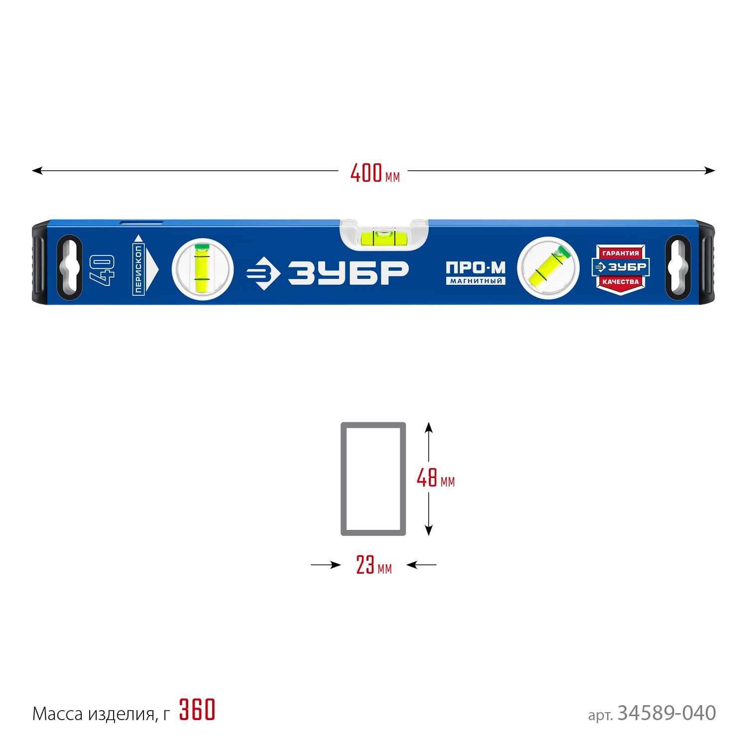 ПроизводителиУровень строительный, 40 см. (0.5 мм/м, 3 гл., фрезер., усил.), магн. (34589-040_z01) ЗУБР