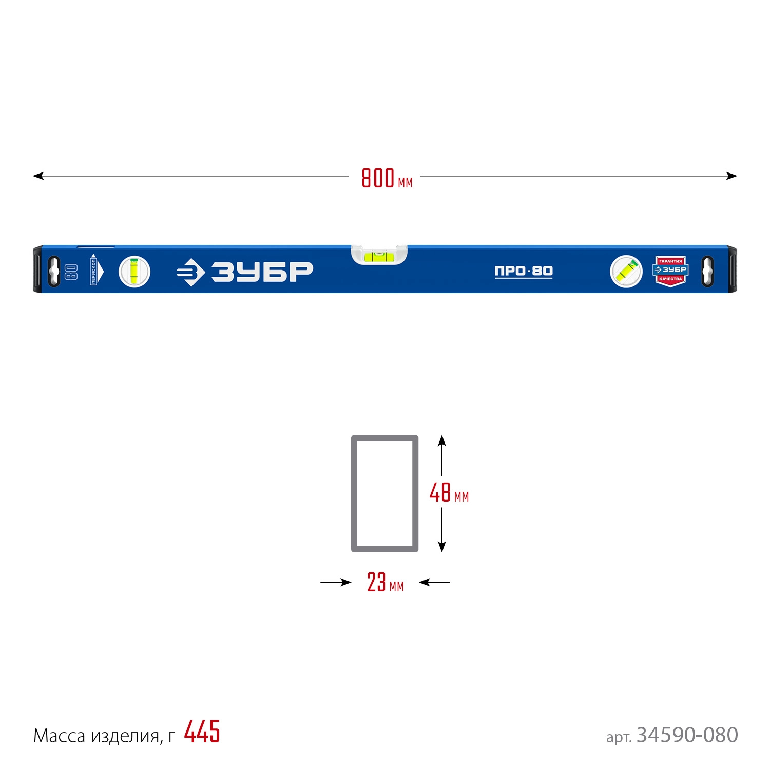 ПроизводителиУровень строительный, 80 см. (0.5 мм/м, 3 гл., фрезер.), магн. (34590-080) ЗУБР