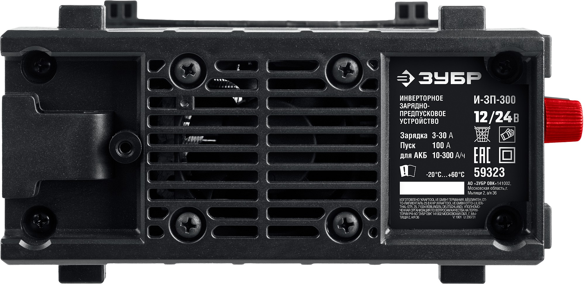 ПроизводителиУстройство инверторное зарядно-предпусковое,12/24 В, 100 А, 3-30 А, И-ЗП-300 (59323) ЗУБР