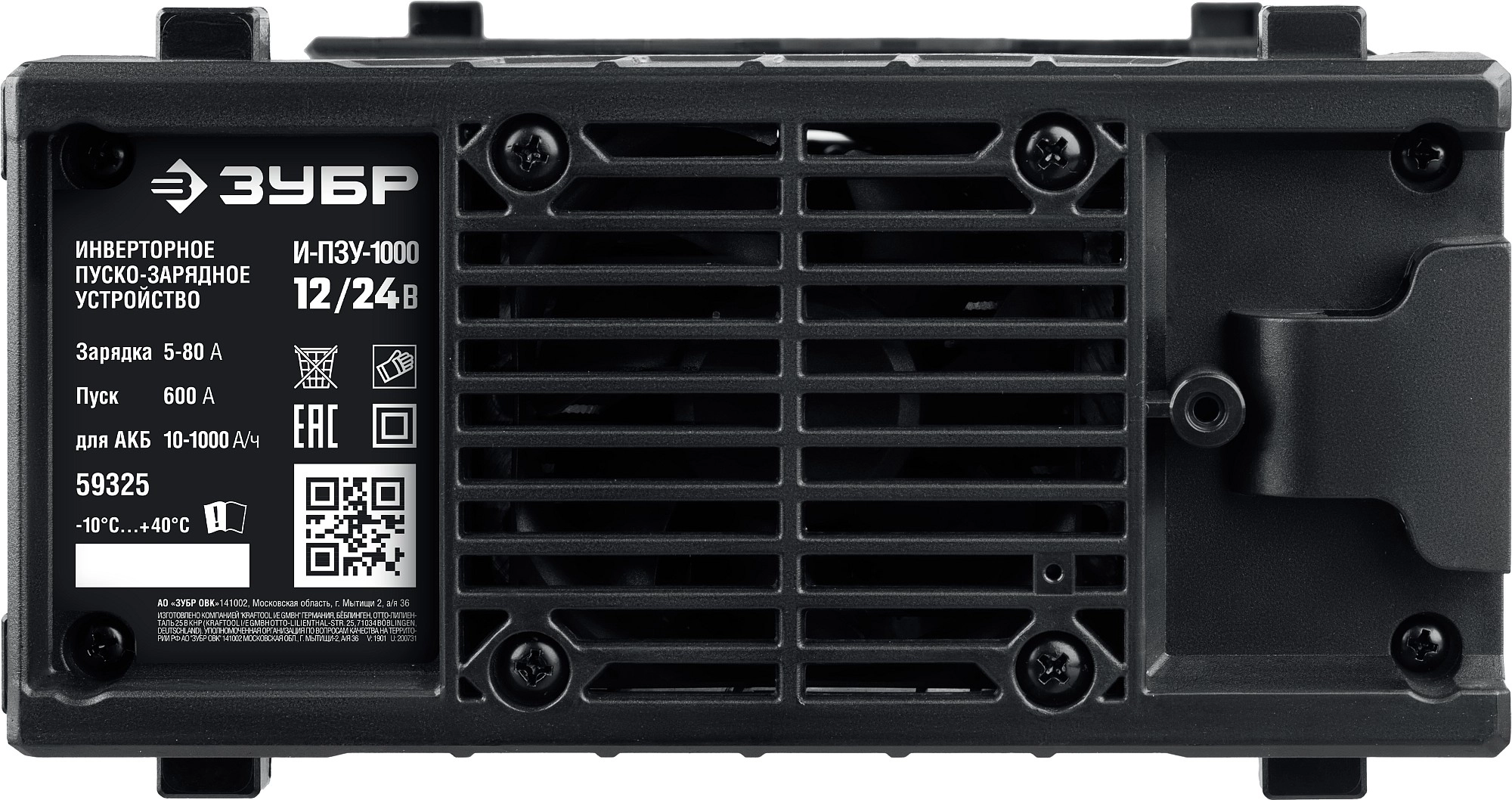 ПроизводителиУстройство инверторное зарядно-предпусковое,12/24 В, 600 А, 5-80 А, И-ПЗУ-1000 (59325) ЗУБР