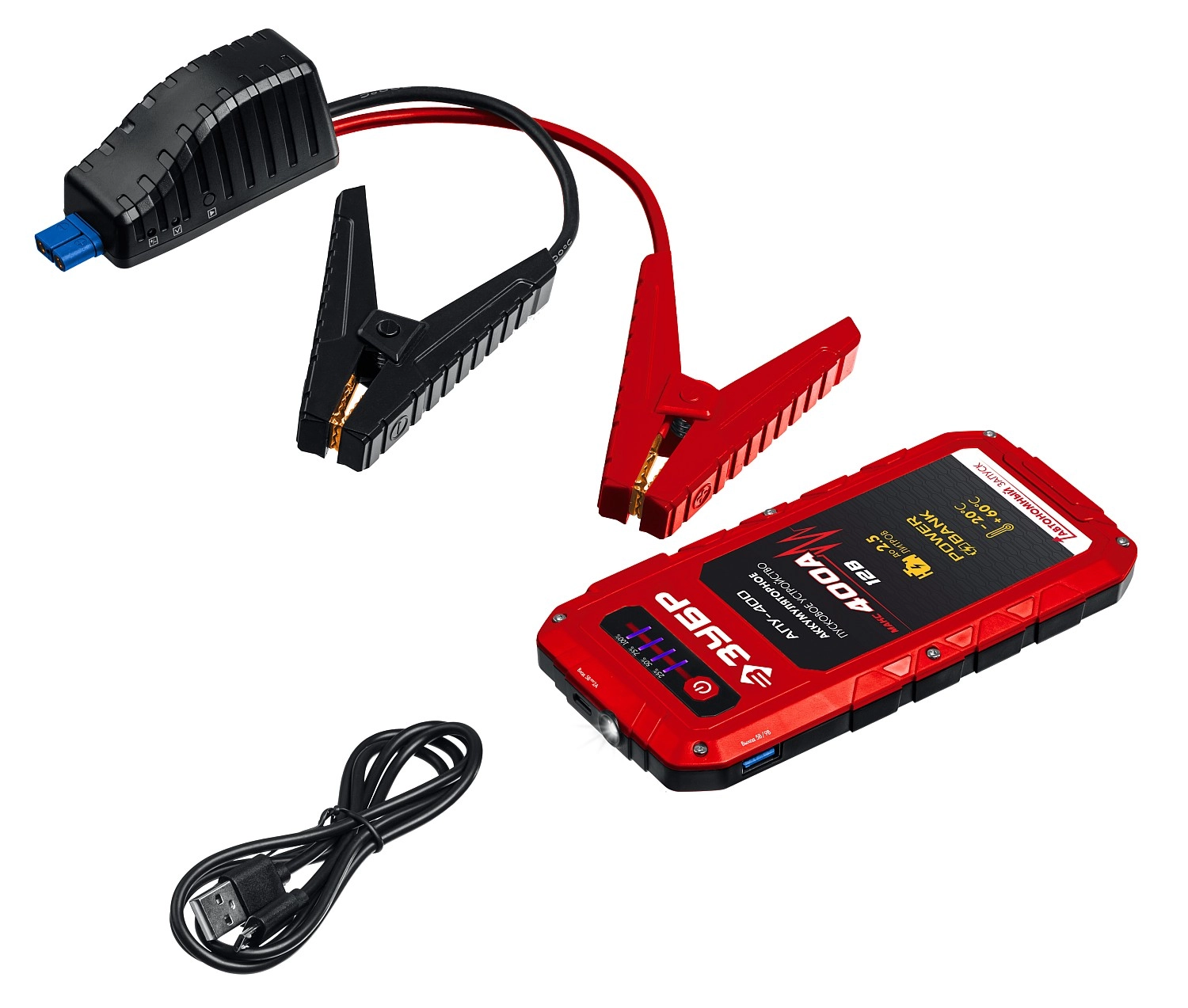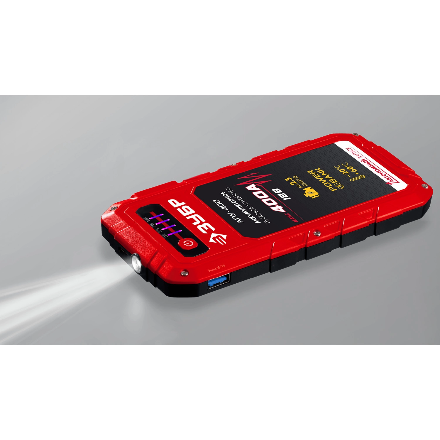 Специальное пуско-зарядное устройство с литий-полимерными аккумуляторами, для аварийного запуска двигателя транспортного средства в случае неисправной АКБ. Устройство подходит для любых типов транспортных средств с напряжением бортовой сети 12В, а также служит для подзарядки и работы широкого ряда мобильной техники и электроники от встроенных разъемов USB 5В. Рекомендовано для любых типов транспортных средств бензиновыми двигателями до 2500 см. куб.