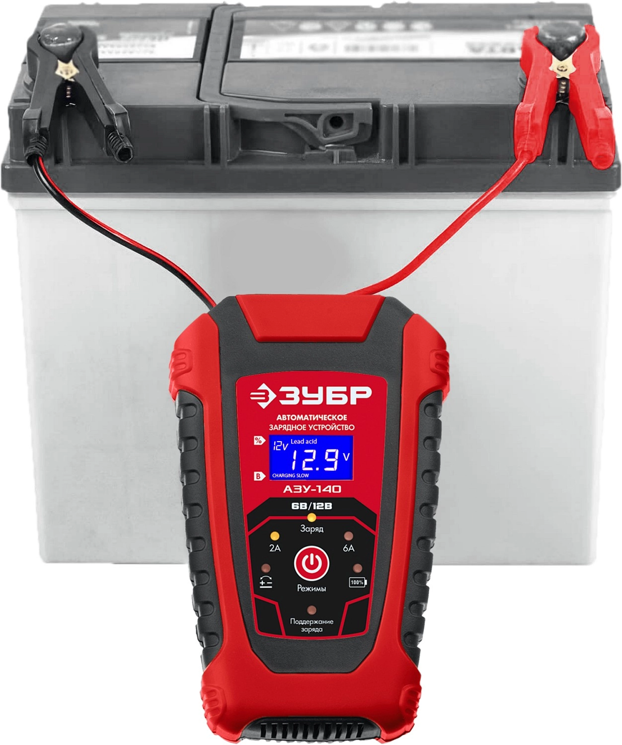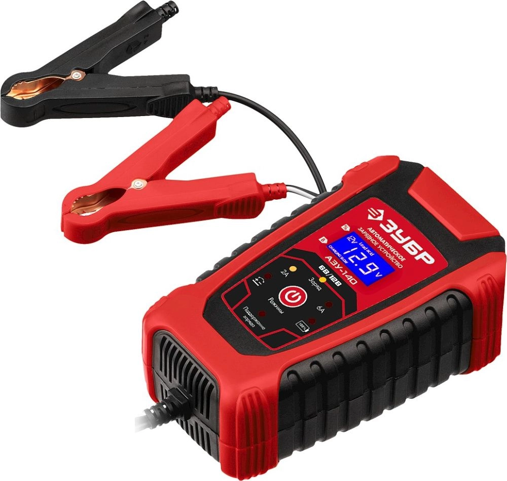 Автоматическое зарядное устройство предназначено для зарядки аккумуляторных батарей легковых автомобилей и мотоциклов, снегоходов, катеров (лодок), газонокосилок, тракторов, гидроциклов и т.д. Зарядные устройства ЗУБР управляются с помощью микропроцессора. Данные устройства обладают высокой эффективностью и имеют защиту от ошибок, которые может допустить пользователь. Микропроцессор зарядного устройства оценивает состояние батареи и соответствующим образом устанавливает силу зарядного тока и напряжение (в зависимости от типа АКБ и её состояния). Это позволяет наиболее эффективно зарядить аккумулятор и продлить срок его службы.