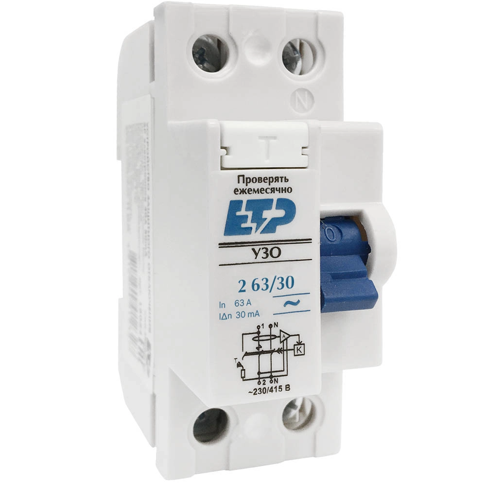 ПроизводителиУстройство защитного отключения DLF362 2Р 63А/30мА (электромеханическое) ETP