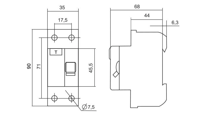 ПроизводителиУстройство защитного отключения (УЗО) DLF362 (230В 2Р 16А/30мА ЭМ) 18097 ETP