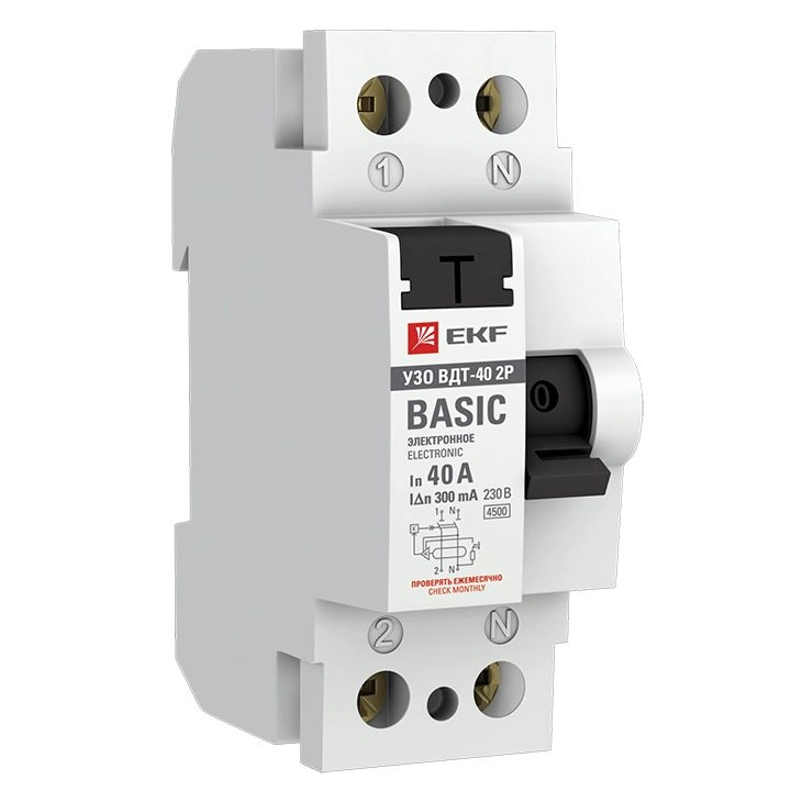 ПроизводителиУстройство защитного отключения (УЗО) ВДТ-40 (230В 2P 40А/300мА ЭЛ) elcb-2-40-300e-sim EKF Basic