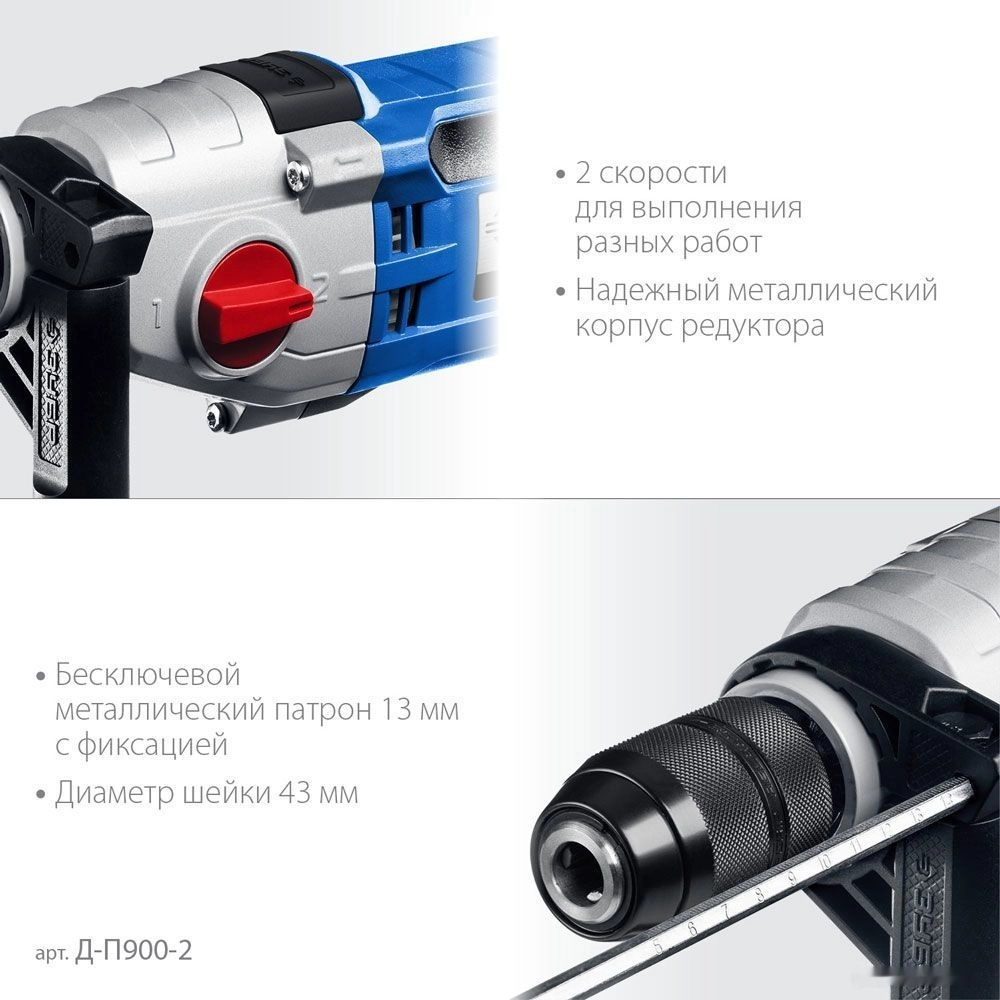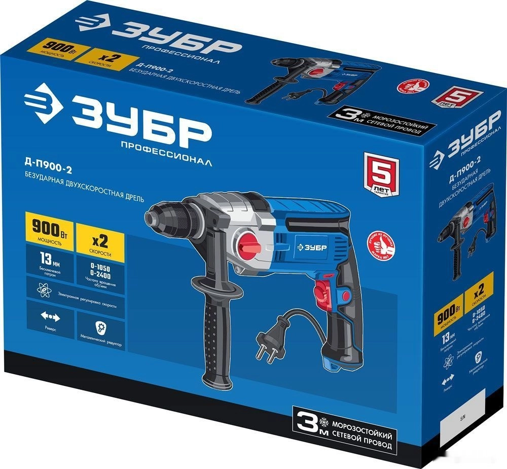 ПроизводителиУЦЕН. Дрель Д-П900-2 (900 Вт, до 13 мм в мет., 2 скор., патрон БЗП, кор.) ЗУБР