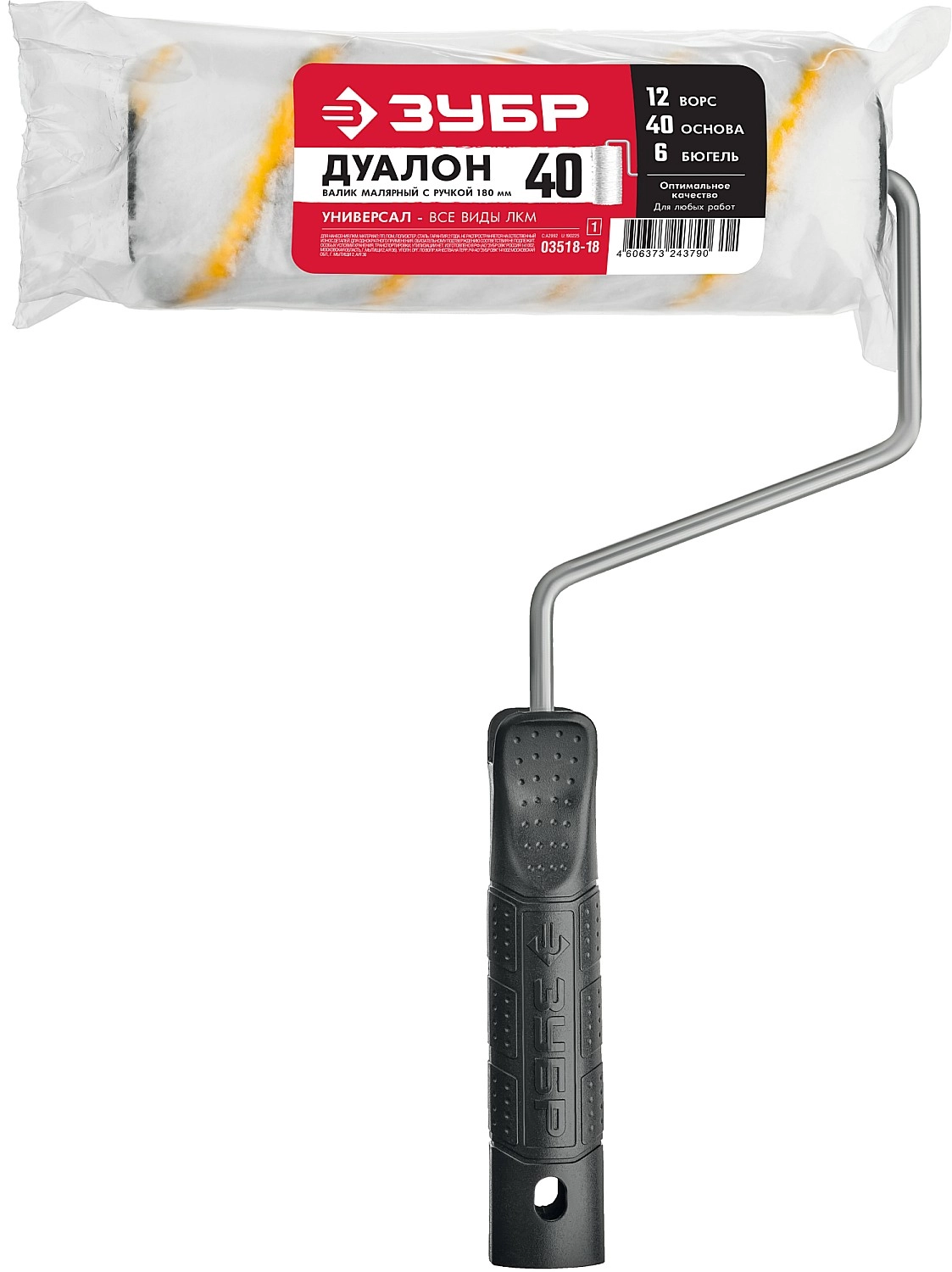 ПроизводителиВалик малярный ГИРПАИНТ 40х180мм, бюгель 6мм, ворс 12мм, все виды ЛКМ (03516-18_z01) ЗУБР