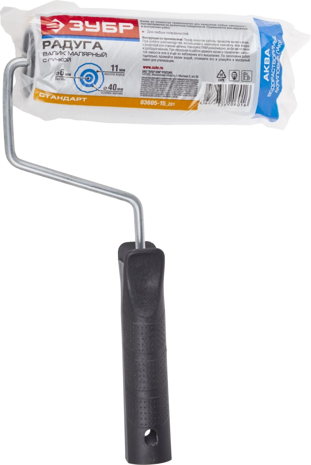 ПроизводителиВалик малярный "ПОРОЛОН", 150 мм, d=62 мм, ручка d=6 мм, Стандарт (03605-15_z01) ЗУБР