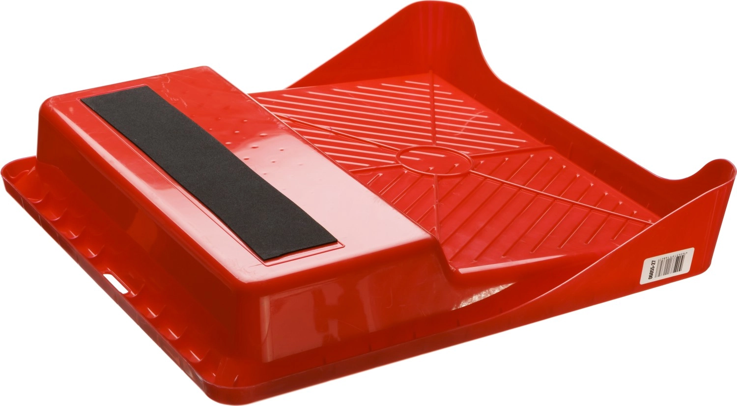 Уникальная форма малярной ванночки предназначена для максимального набора и равномерного распределения лакокрасочного материала по поверхности валика.