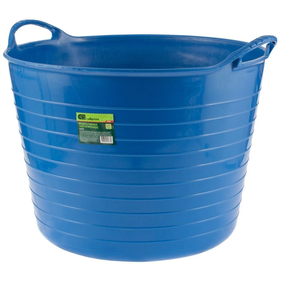 Сверхпрочное гибкое ведро Сибртех 67508 синего цвета, объемом 40 л, пригодится на даче, стройке, рыбалке, в быту.