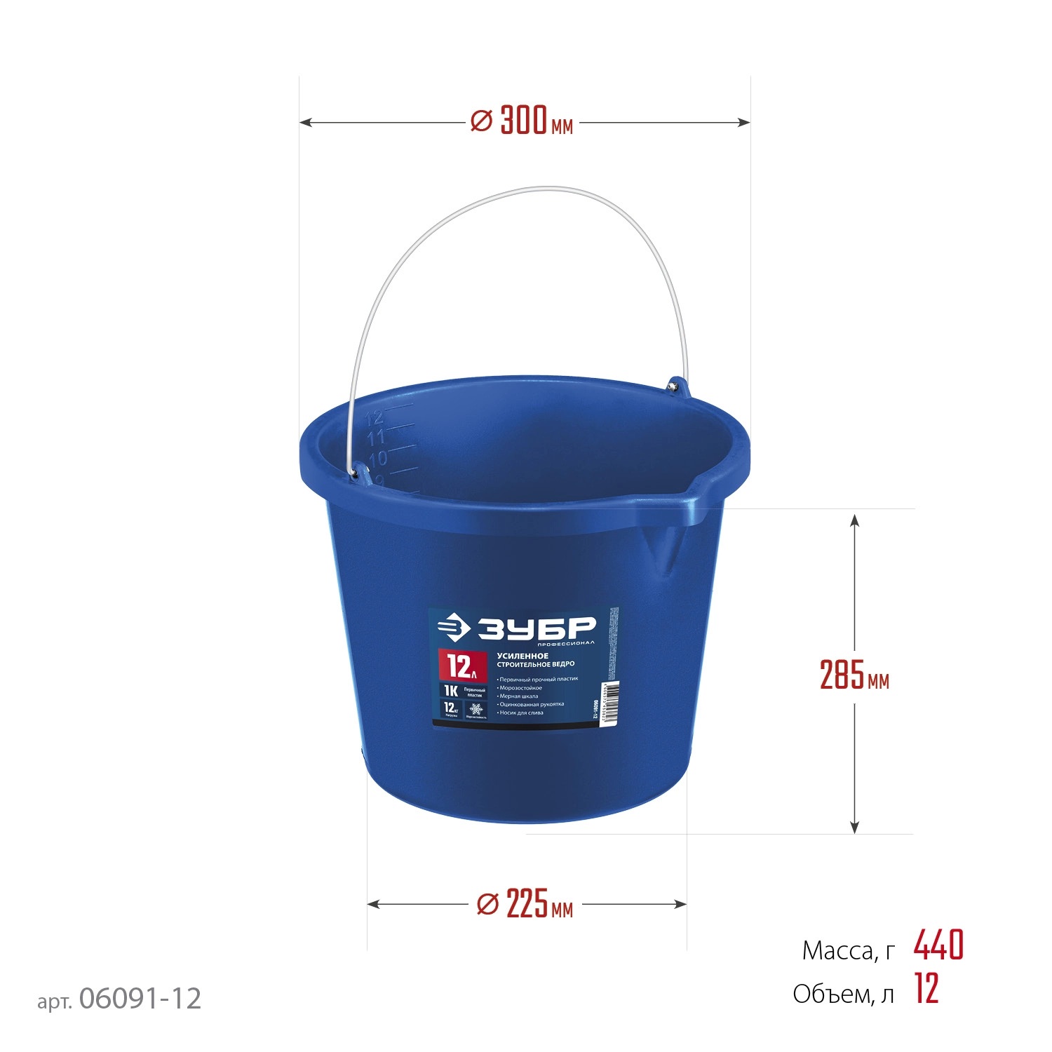 ПроизводителиВедро малярное пластмассовое, 12 л, первичный высокопрочный пластик, с носиком (06091-12) ЗУБР