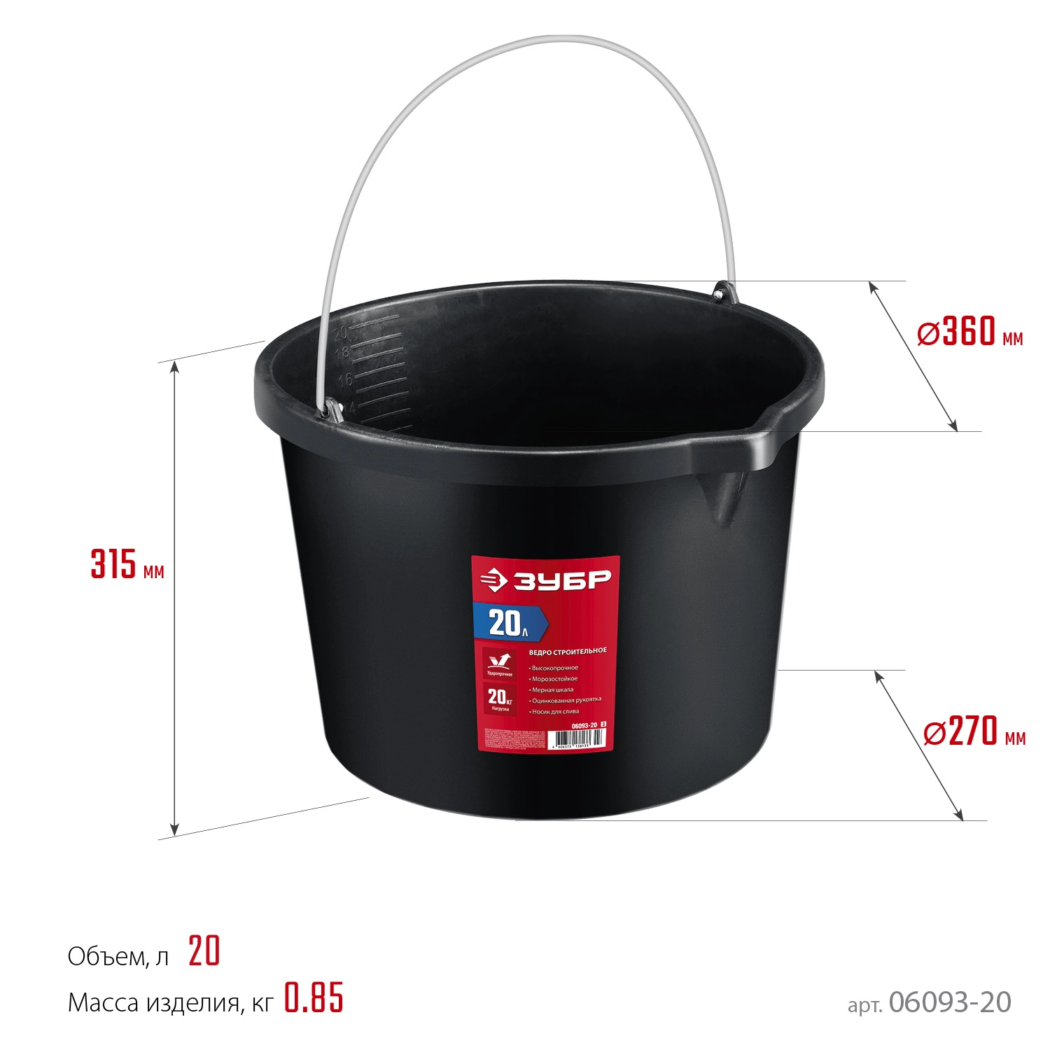 ПроизводителиВедро малярное пластмассовое, 20 л, высокопрочный пластик, с носиком (06093-20_z03) ЗУБР