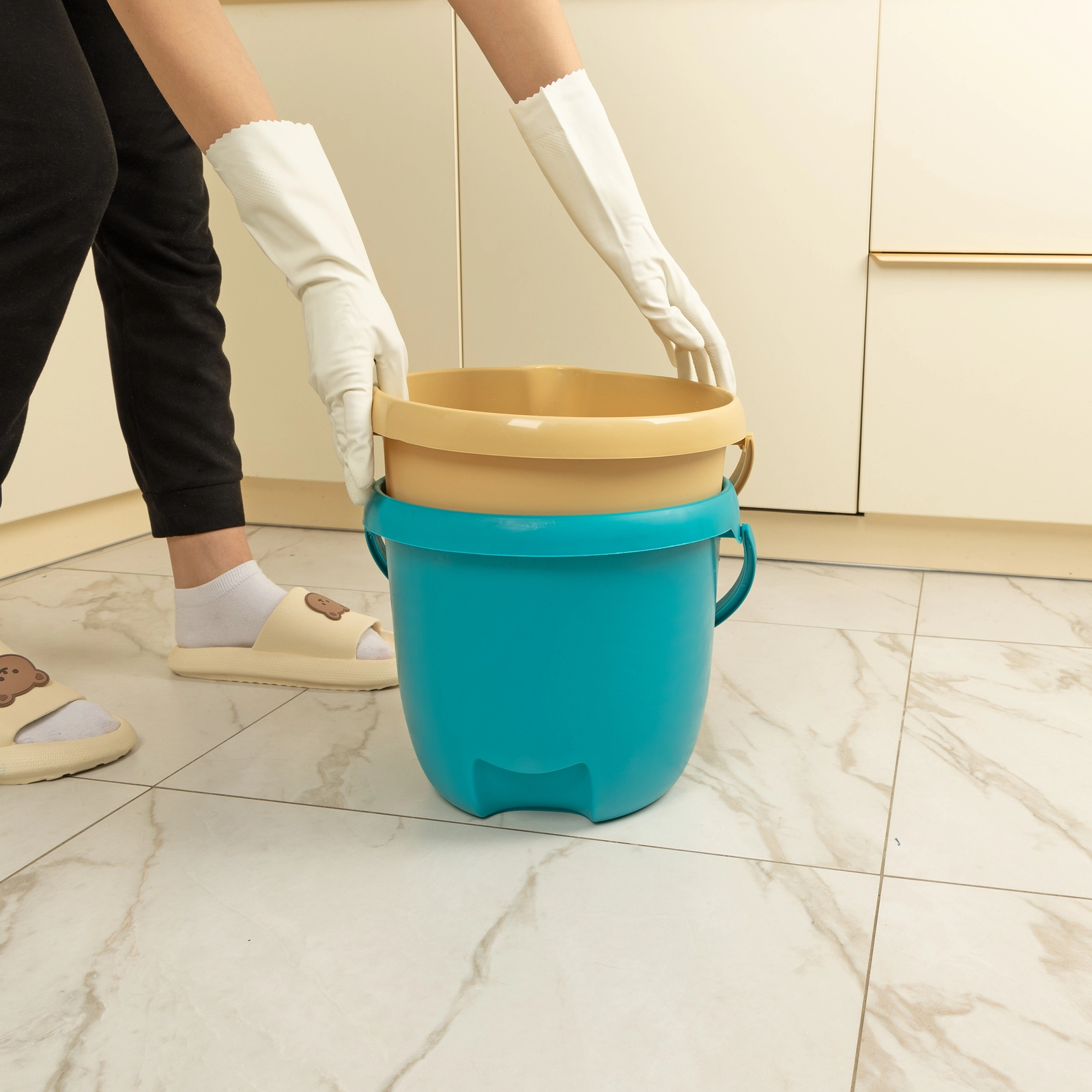 Ведро удобно для переноски благодаря подвижной толстой ручке.