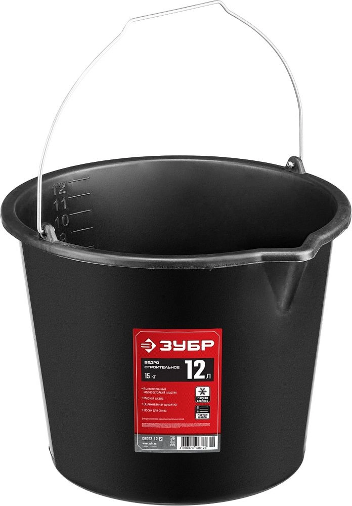 ПроизводителиВедро строительное пластмассовое, высокопрочное, с носиком, 12л (06093-12_z02) ЗУБР