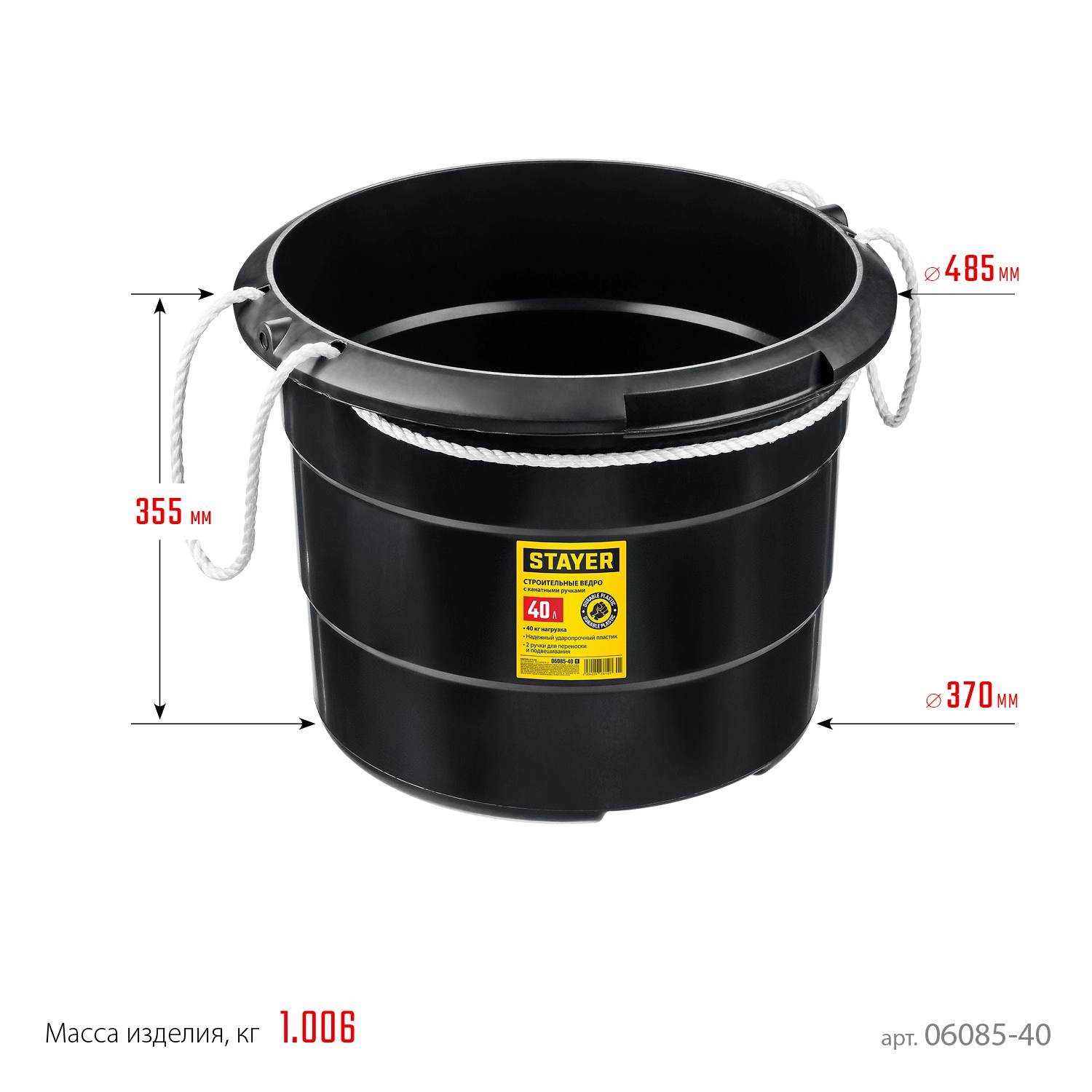 ПроизводителиВедро строительное с канатными ручками, 40л, пластмассовое, высокопрочное (06085-40_z01) STAYER