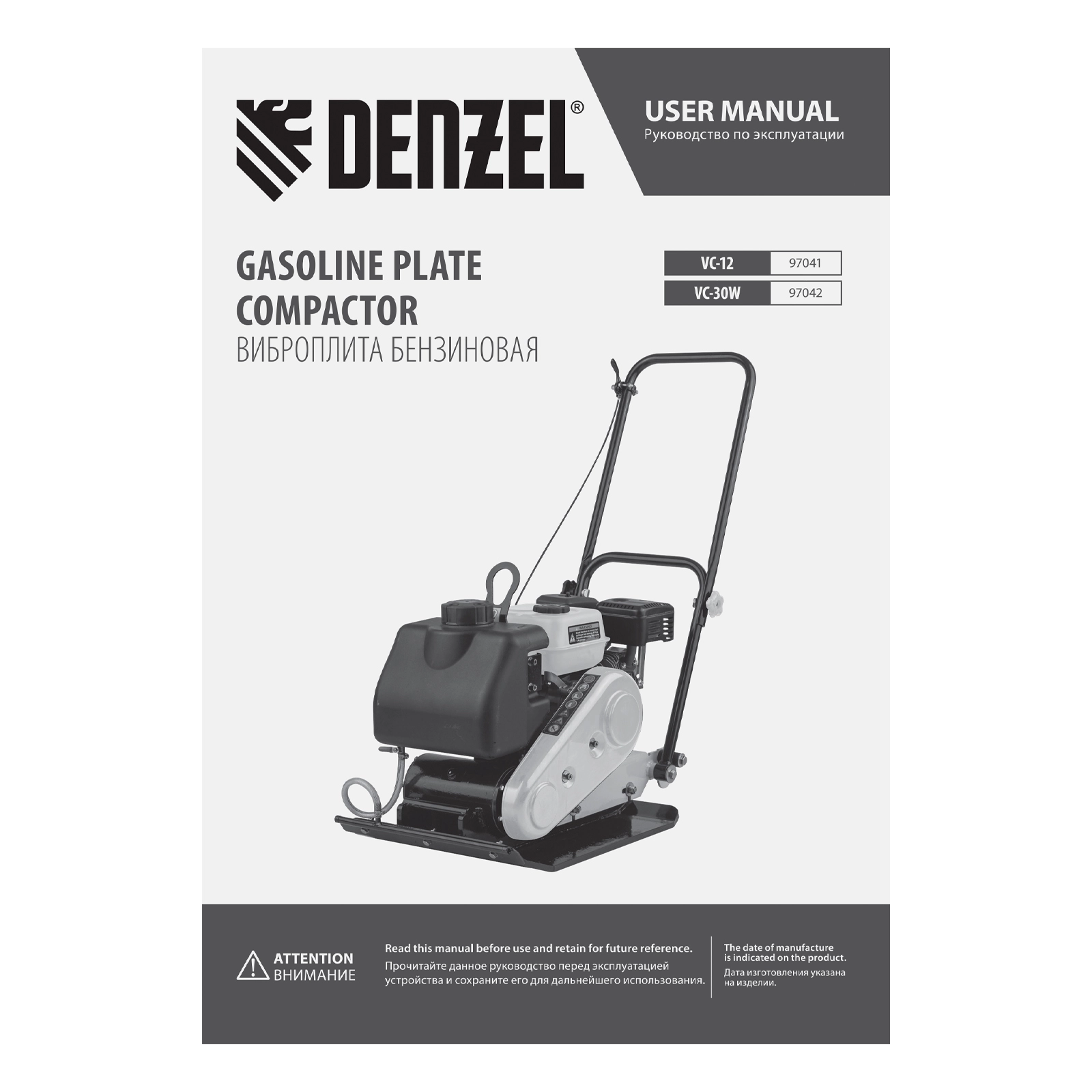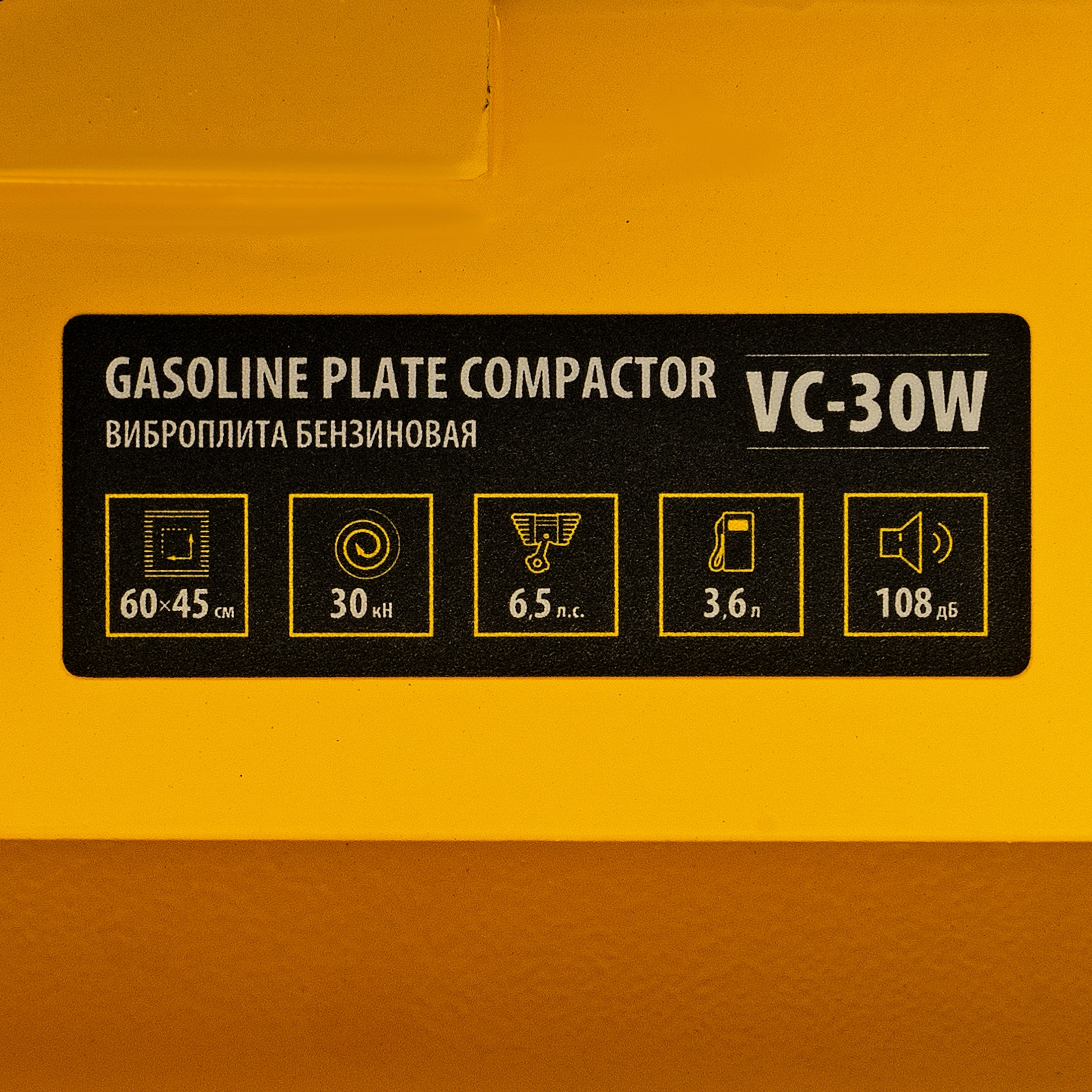 ПроизводителиВиброплита бензиновая VC-30W, 30 кН, 60х45 см, 196 см3, бак для воды Denzel
