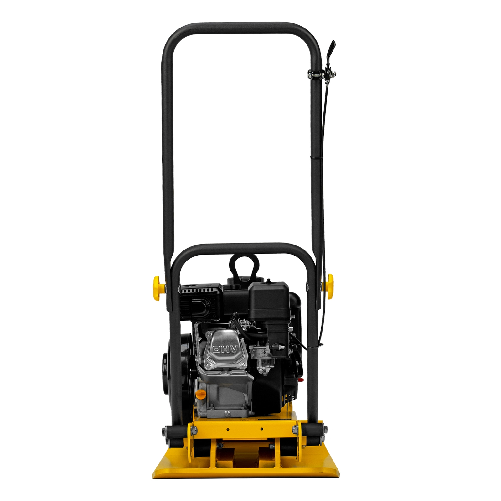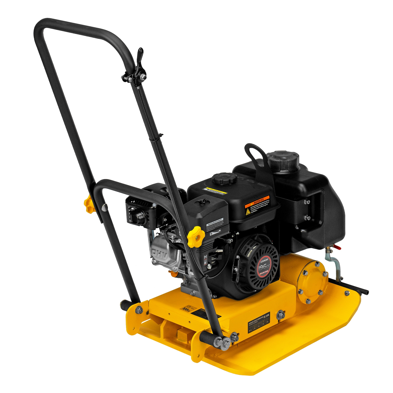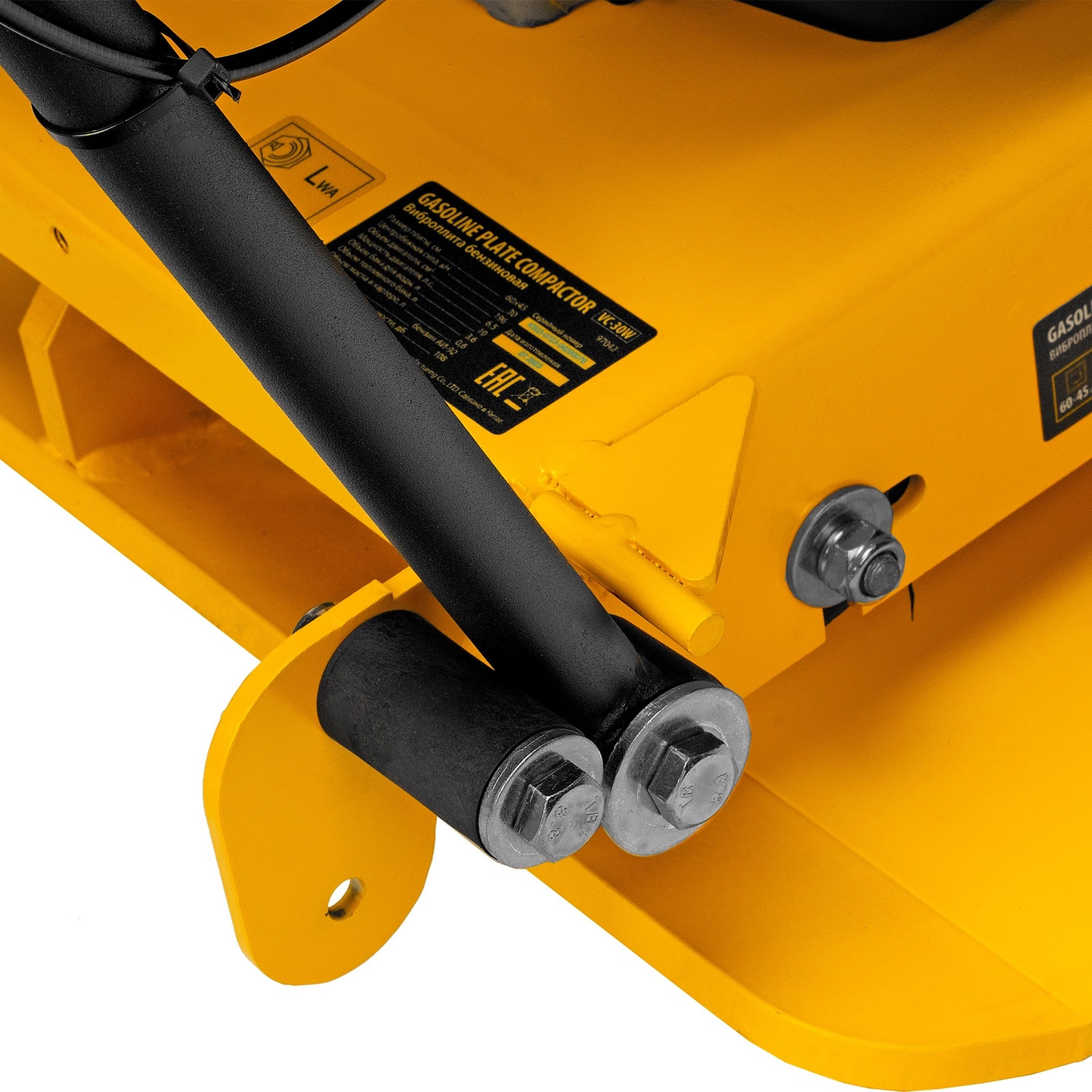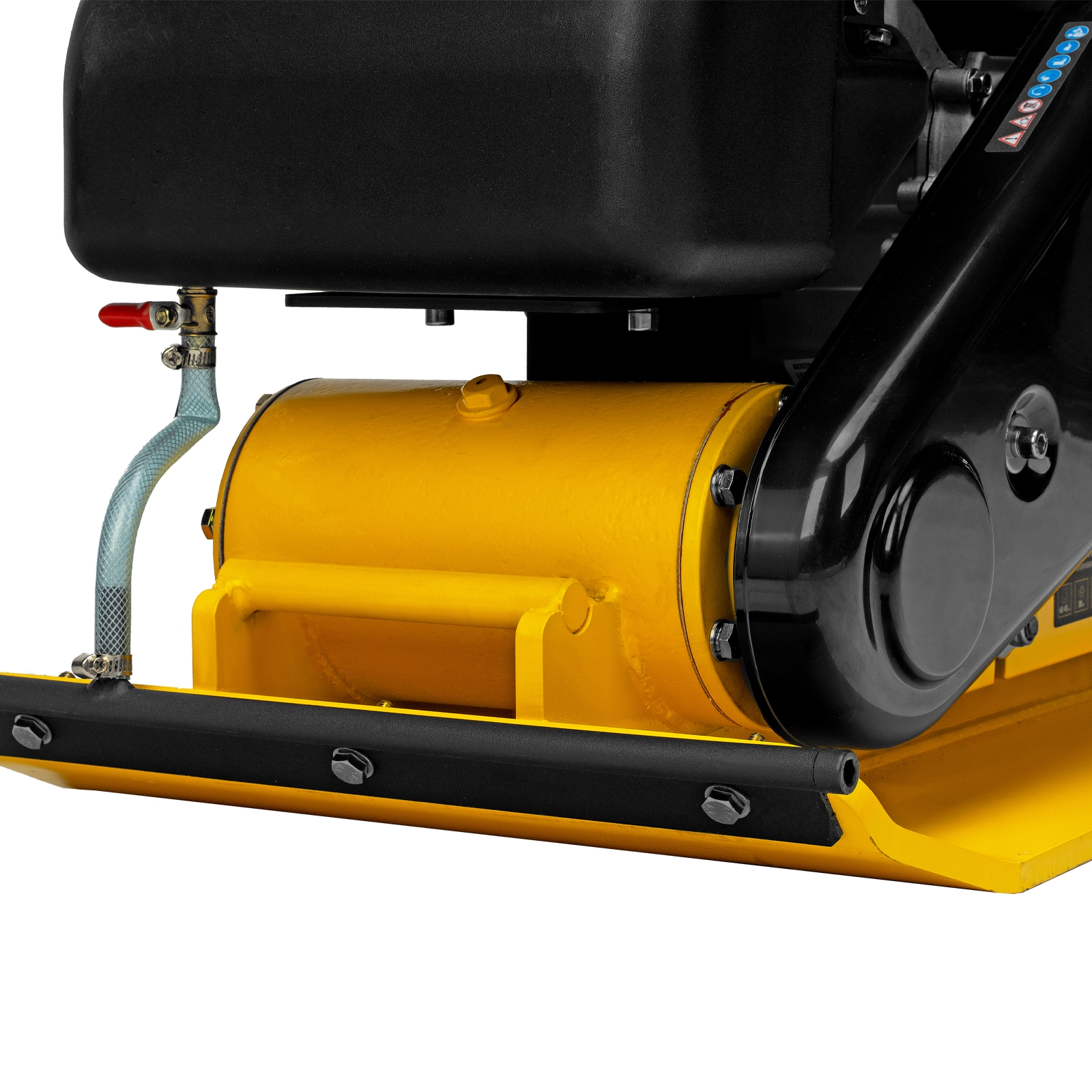 - Удобная работа с горячим асфальтом и липкими смесями — на виброплите установлен бак для воды, орошение уплотняемого покрытия предотвращает его налипание на основание плиты.