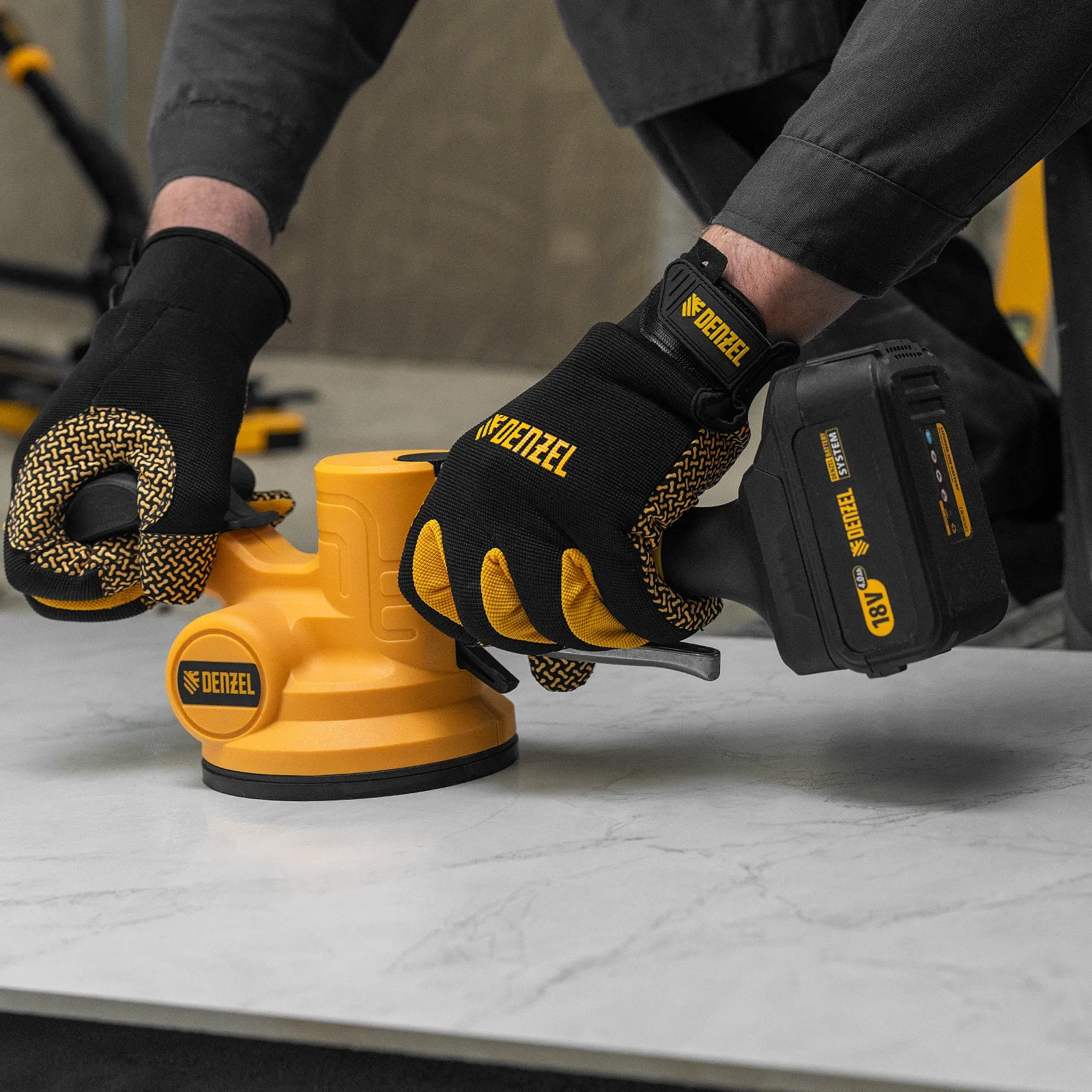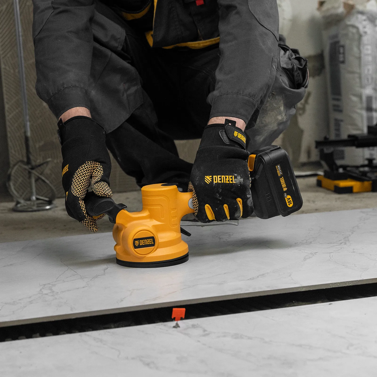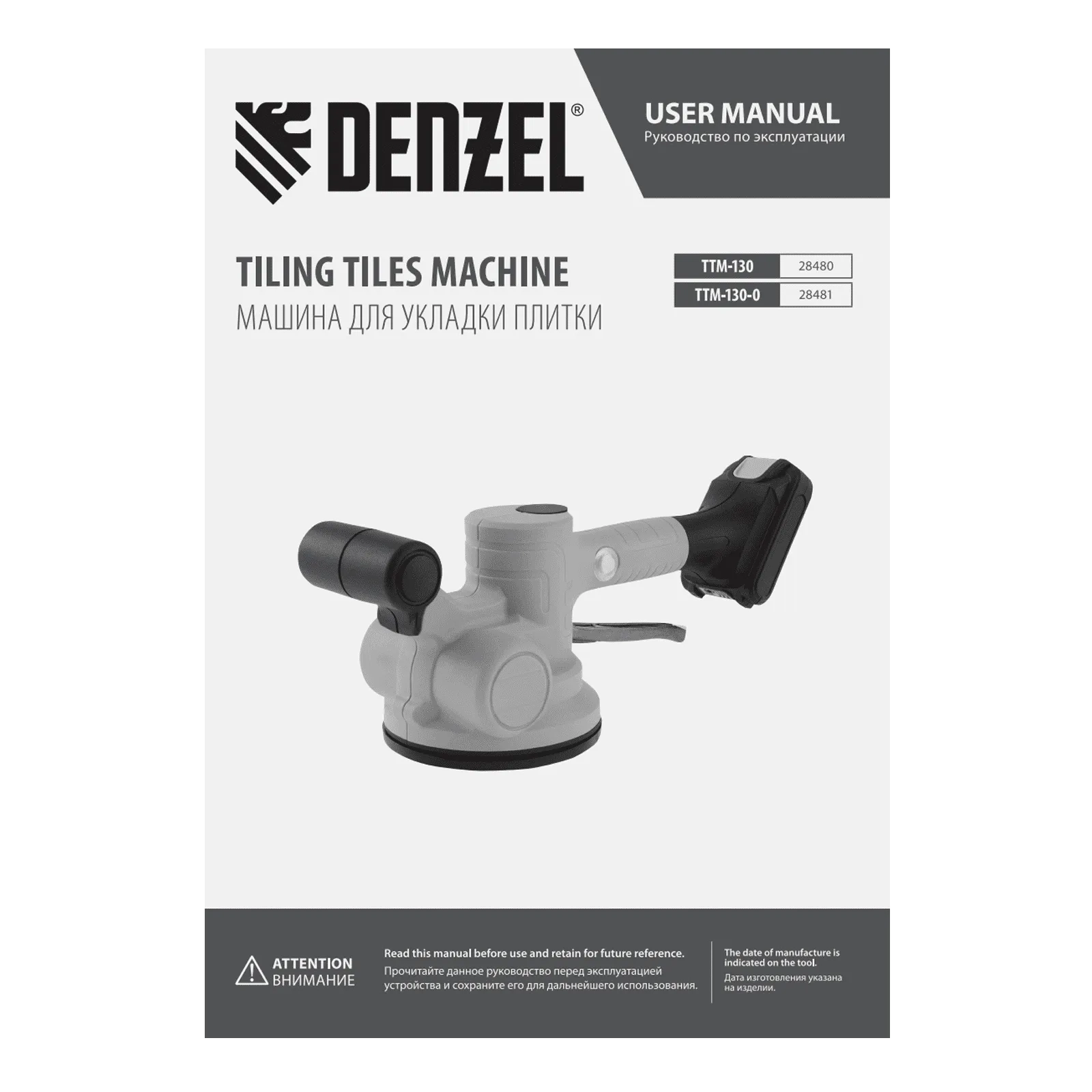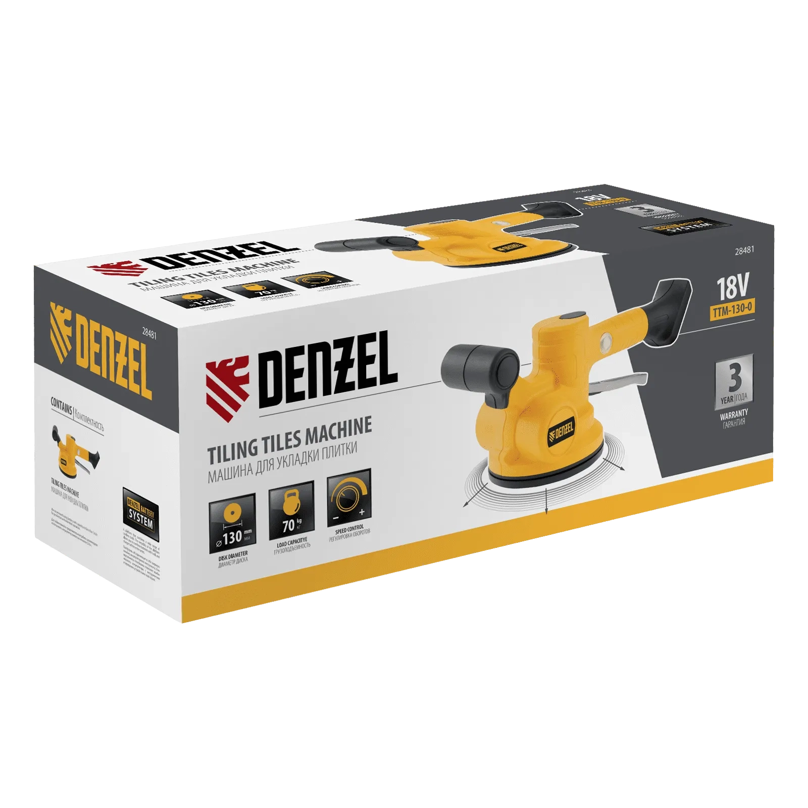 ПроизводителиВиброприсоска для укладки плитки TTM-130-0, 18В Li-Ion Denzel