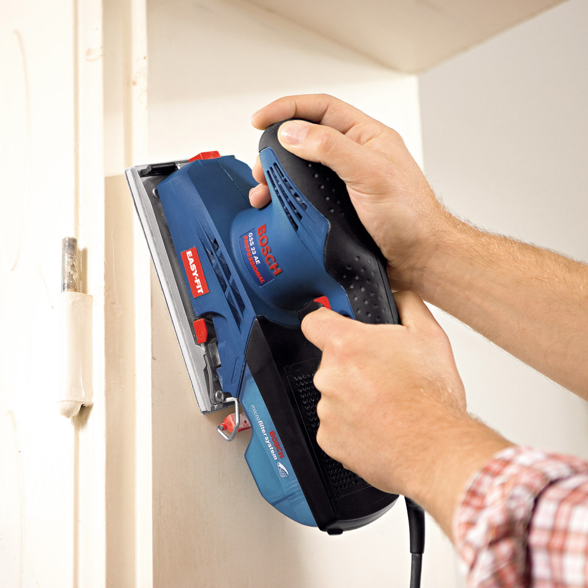 - Благодаря прочной фиксации шлифлиста обеспечивается высокое качество обработки поверхности и оптимальное взаимодействие со встроенным микрофильтром для удаления пыли во время работы