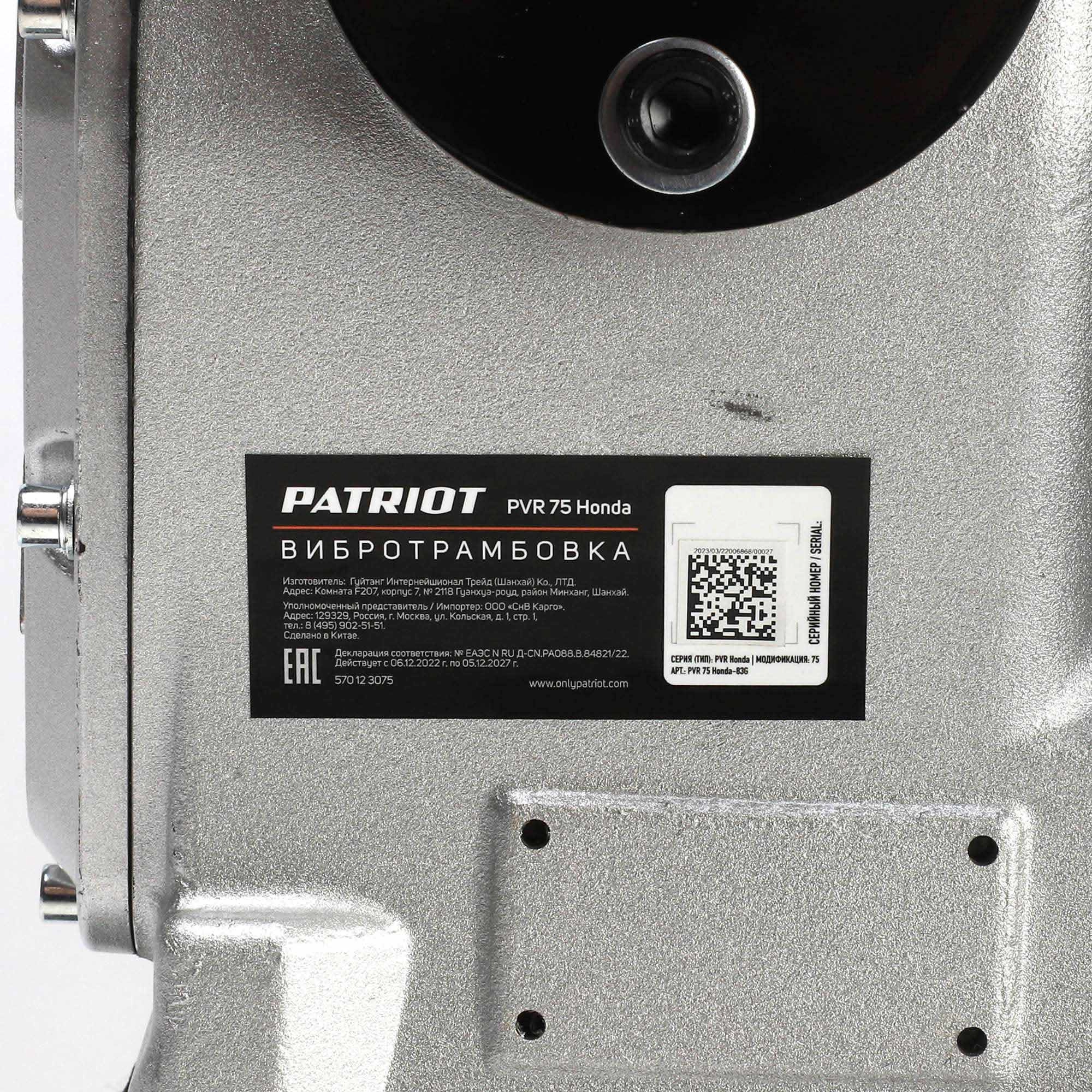 ПроизводителиВибротрамбовка PVR-75 (4.8 кВт Honda GX160 14 Кн 75 кг подошва 345х285мм) PATRIOT / EXPERT