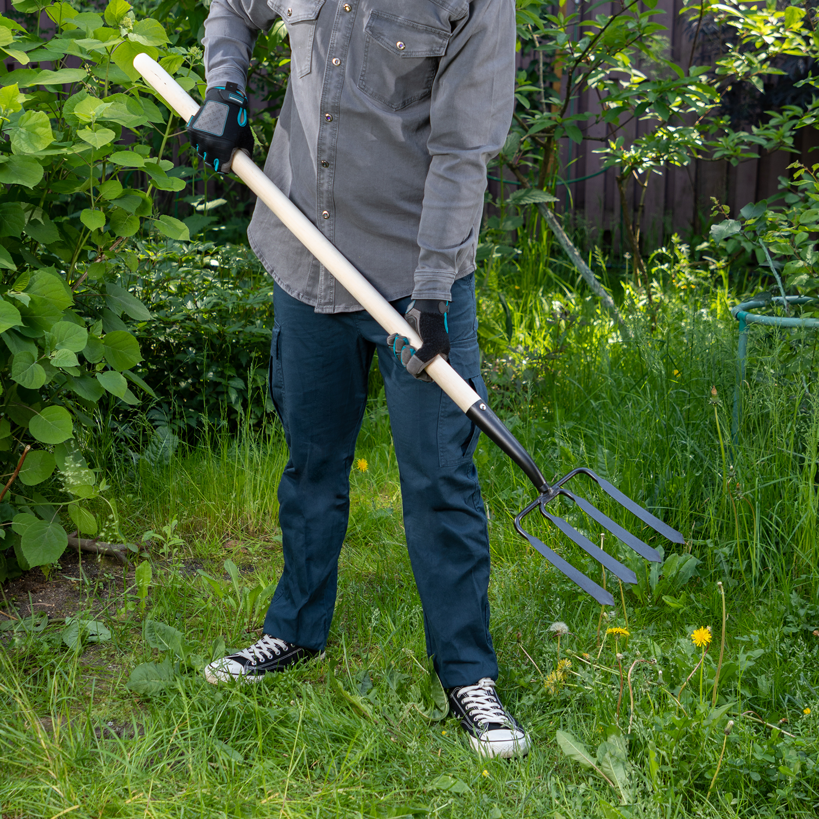 Эффективная работа — зубья с треугольным профилем и заостренными концами легко разрыхляют почву и выдерживают изгибающие нагрузки при вскапывании легких грунтов.