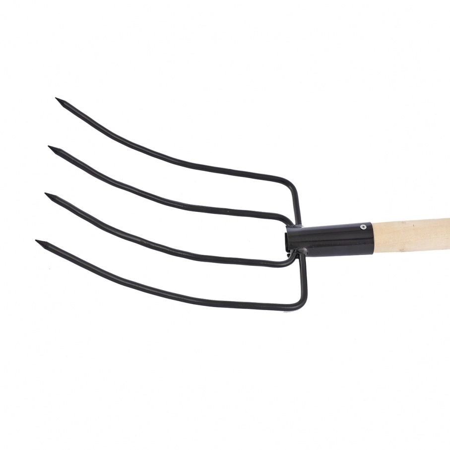 Комфортная работа — деревянный черенок обеспечивает удобный хват, а рога с острыми концами надежно захватывают траву и сено.