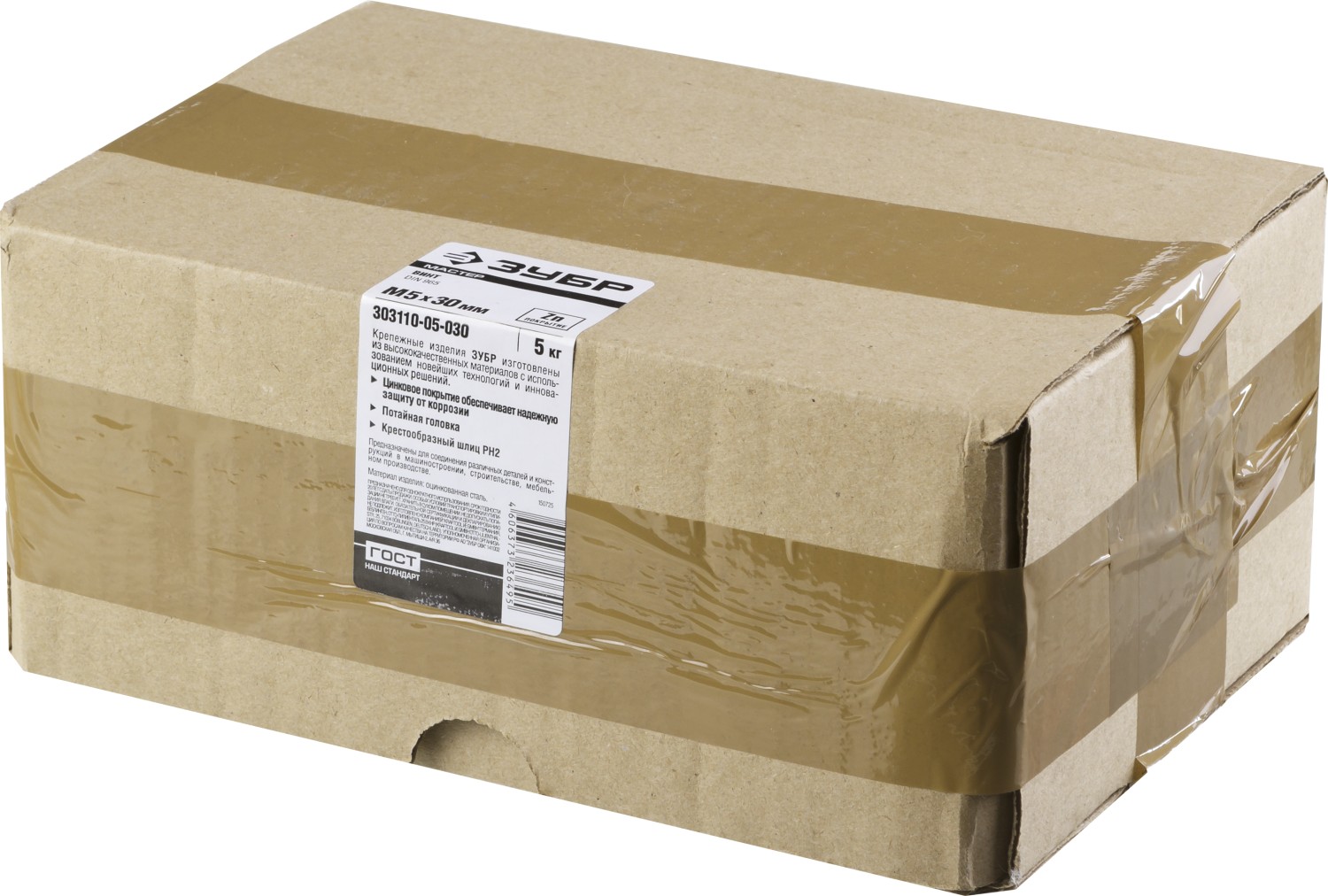 ПроизводителиВинт с потайной головкой DIN 965, кл. пр. 4.8, M5х30мм, цинк, 5кг (303110-05-030) ЗУБР