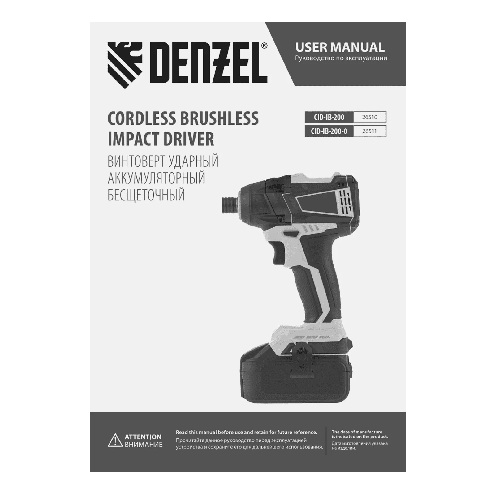ПроизводителиВинтоверт ударный аккум. бесщет. CID-IB-200-0, 18В Li-Ion Denzel