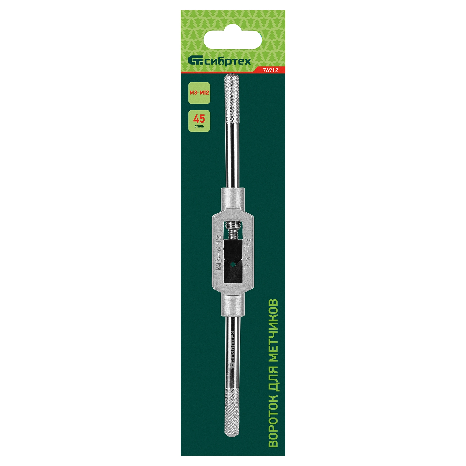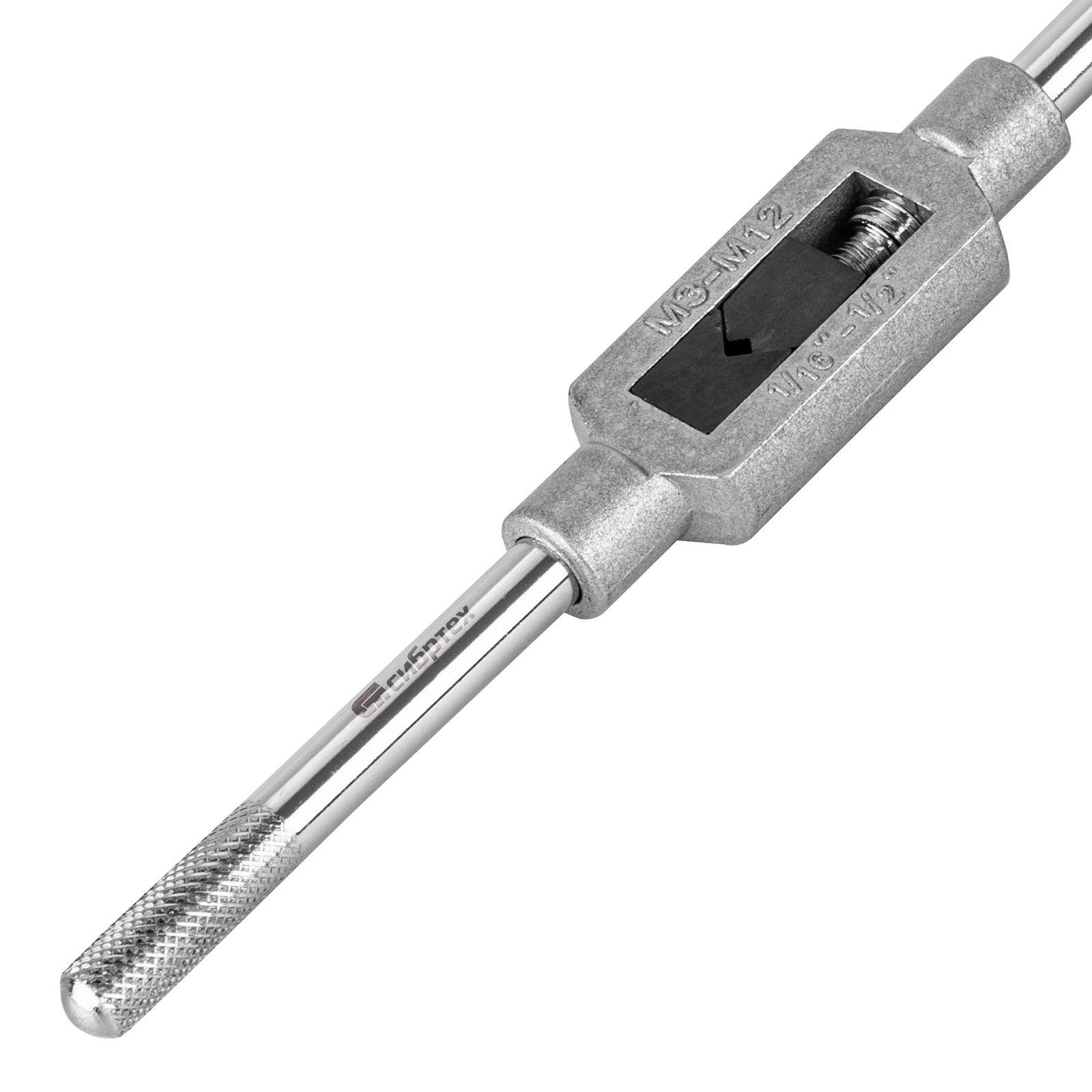 Вороток для метчиков Сибртех 76912, М3-М12, предназначен для ручного нарезания внутренней резьбы в отверстиях и цилиндрических деталях.
