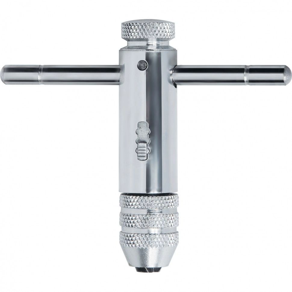 Хромированный вороток для метчиков Matrix 76907, М5-М12, с трещоткой, предназначен для ручного нарезания внутренней резьбы в отверстиях и цилиндрических деталях.