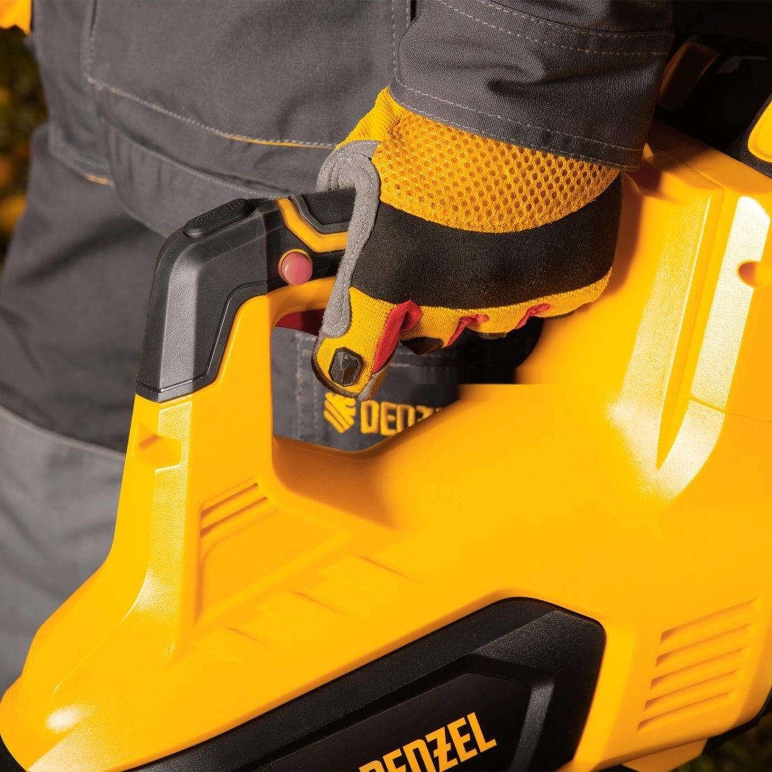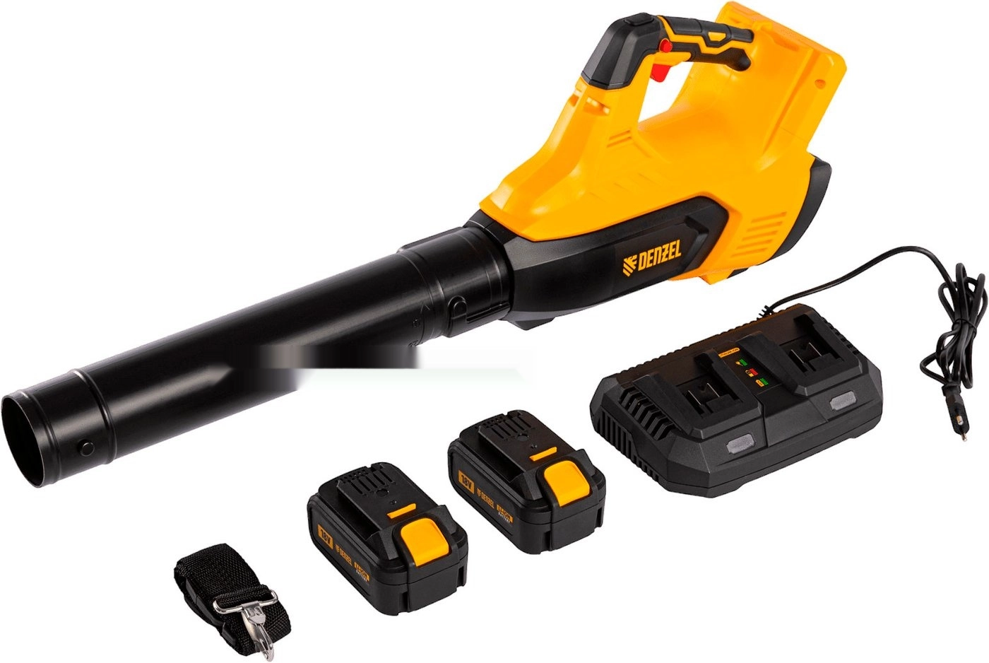 ПроизводителиВоздуходувка аккумуляторная RB180-36, Li-ion, 36 В, 4 Ач, 180 км/ч, 820 м3/ч Denzel