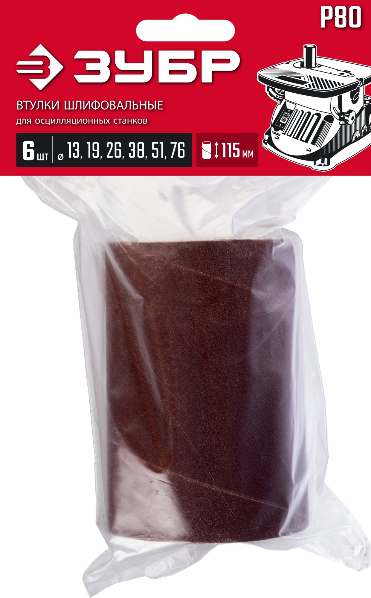 ПроизводителиВтулки шлиф для станка,набор 6 шт:13, 19, 26, 38, 51, 76мм,высота 115мм,Р80,СШО-5(35649-H6-80) ЗУБР