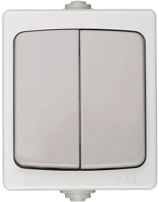 ПроизводителиВыключатель "АВРОРА" двухклавишный, IP44, цвет серо-белый, 10А/~250В (SV-54336-W) СВЕТОЗАР