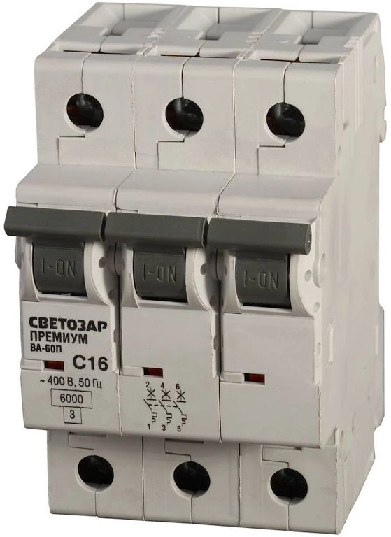 ПроизводителиВыключатель автоматический СВЕТОЗАР "ПРЕМИУМ" 3-полюсный, 50 A, "C", откл. сп. 6 кА, 400 В