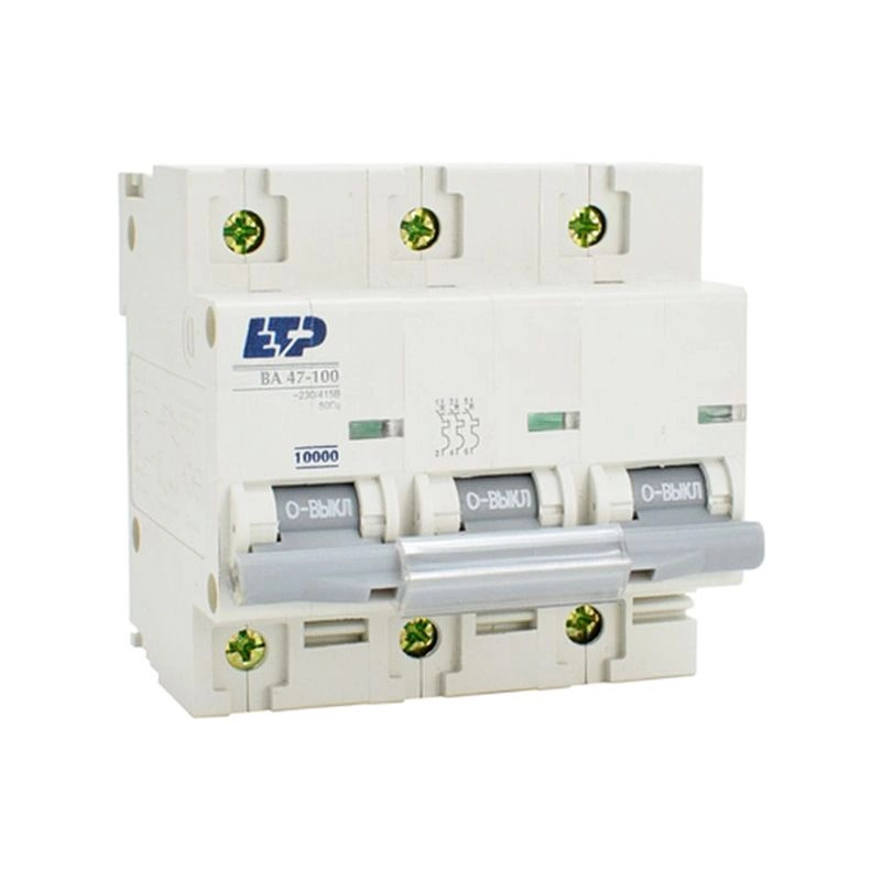 ПроизводителиВыключатель автоматический ВА 47-100 (400В 3P 100А (C) 10кА) 11560 ETP