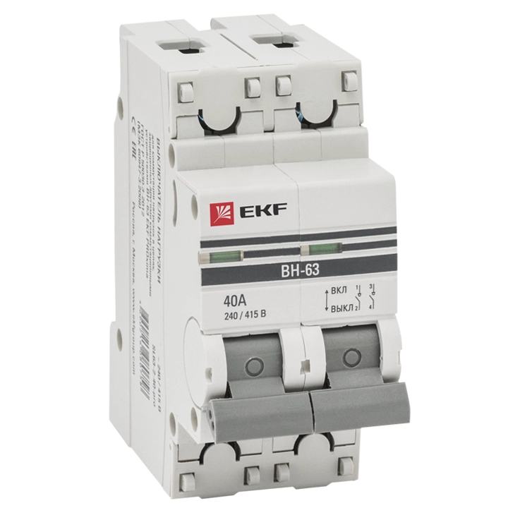 ПроизводителиВыключатель нагрузки ВН-63 (400В 2Р 40А 45кА) SL63-2-40-pro EKF PROxima