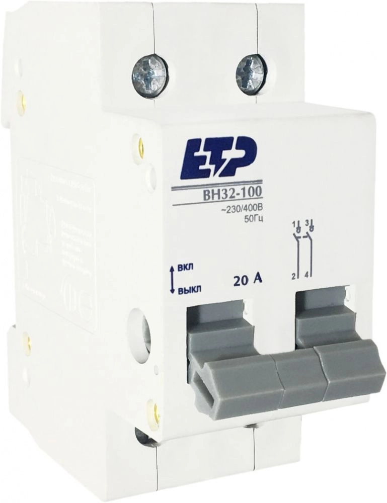 ПроизводителиВыключатель нагрузки ВН32-100 (230/400В 2Р 20А 12кА) 12317 ETP