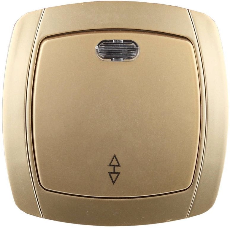 Выключатель СВЕТОЗАР "АКЦЕНТ" проходной одноклавишный в сборе, с подсветкой, цвет золотой металлик,