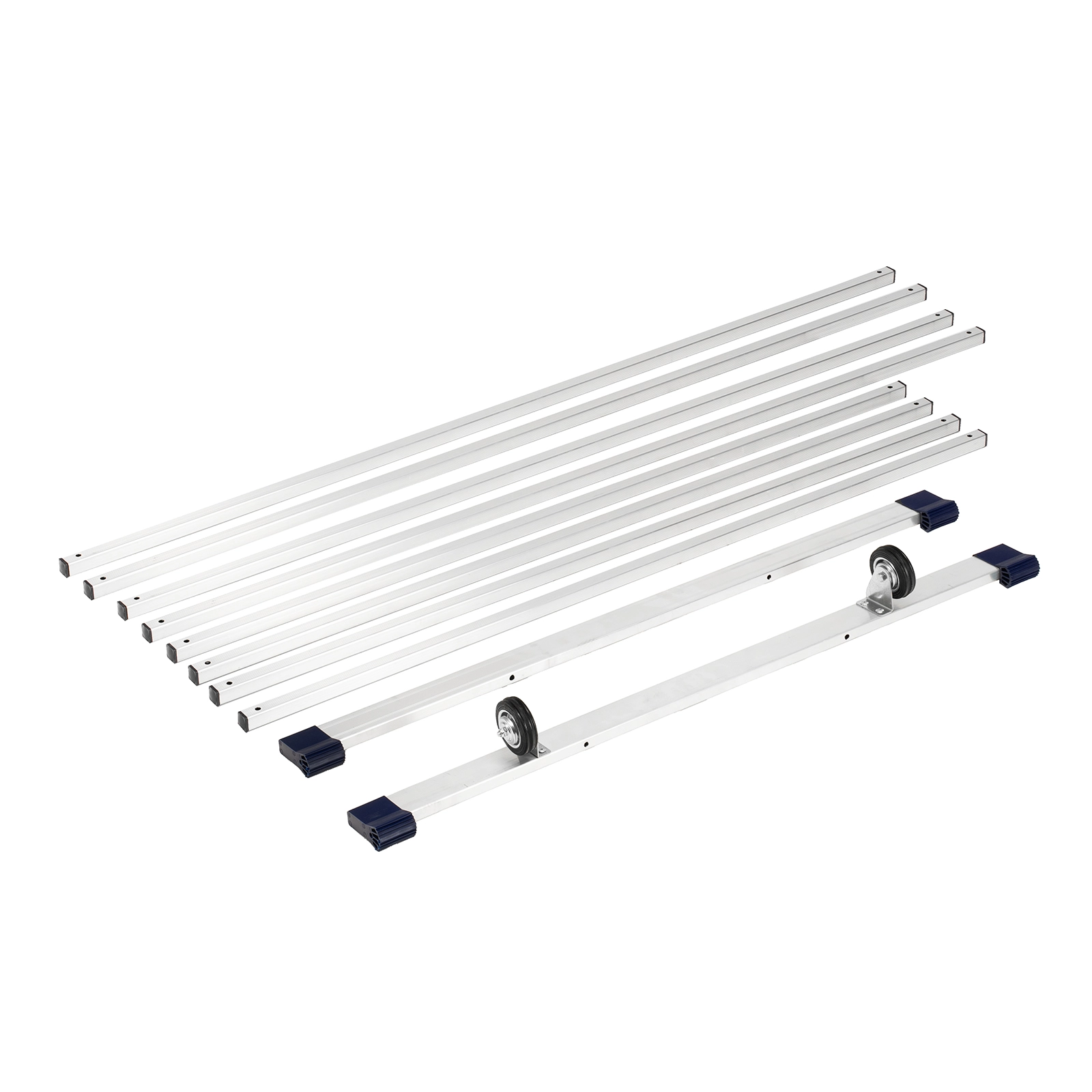 Опоры и перекладины выполнены из прессованных алюминиевых профилей, а значит, конструкция прочная и одновременно легкая.