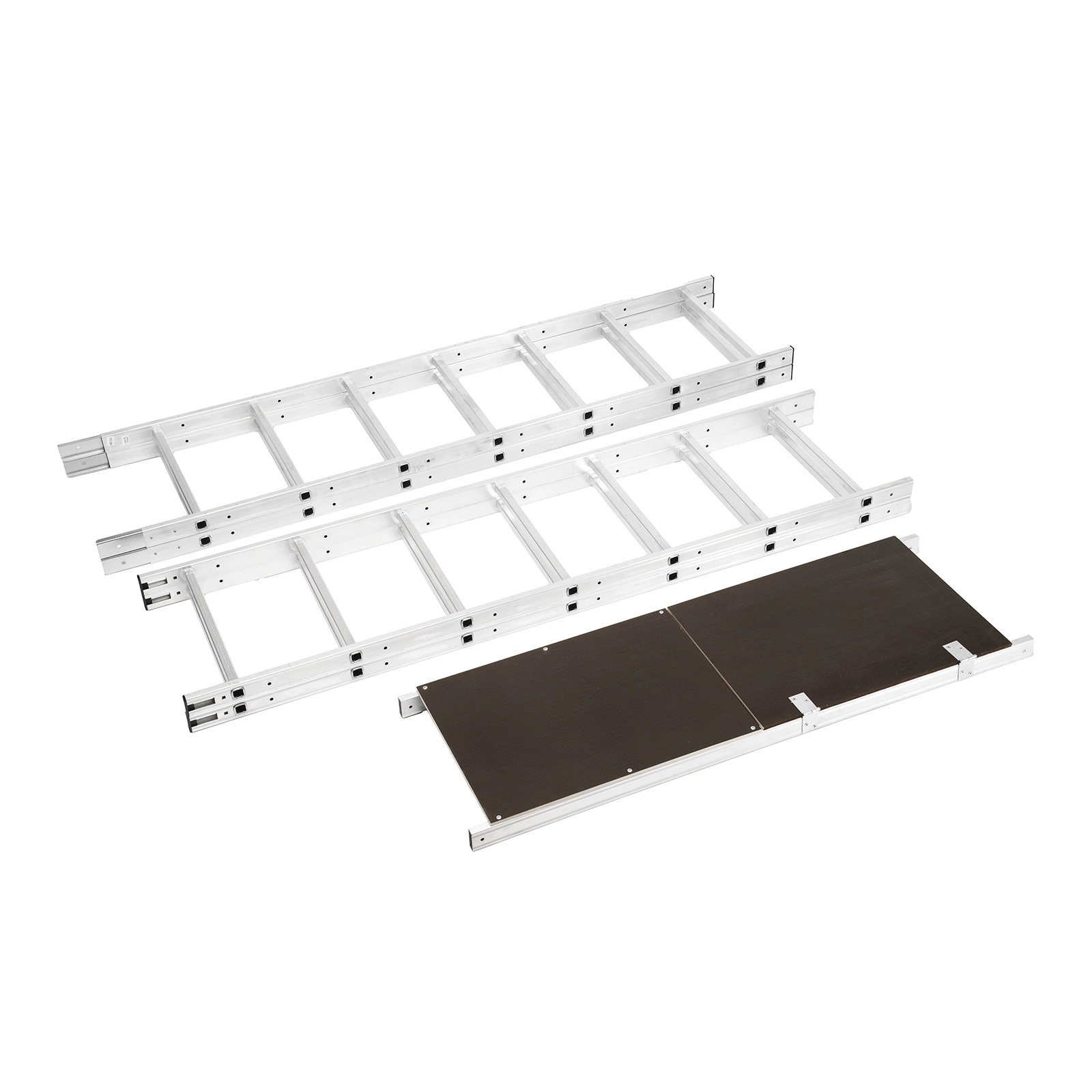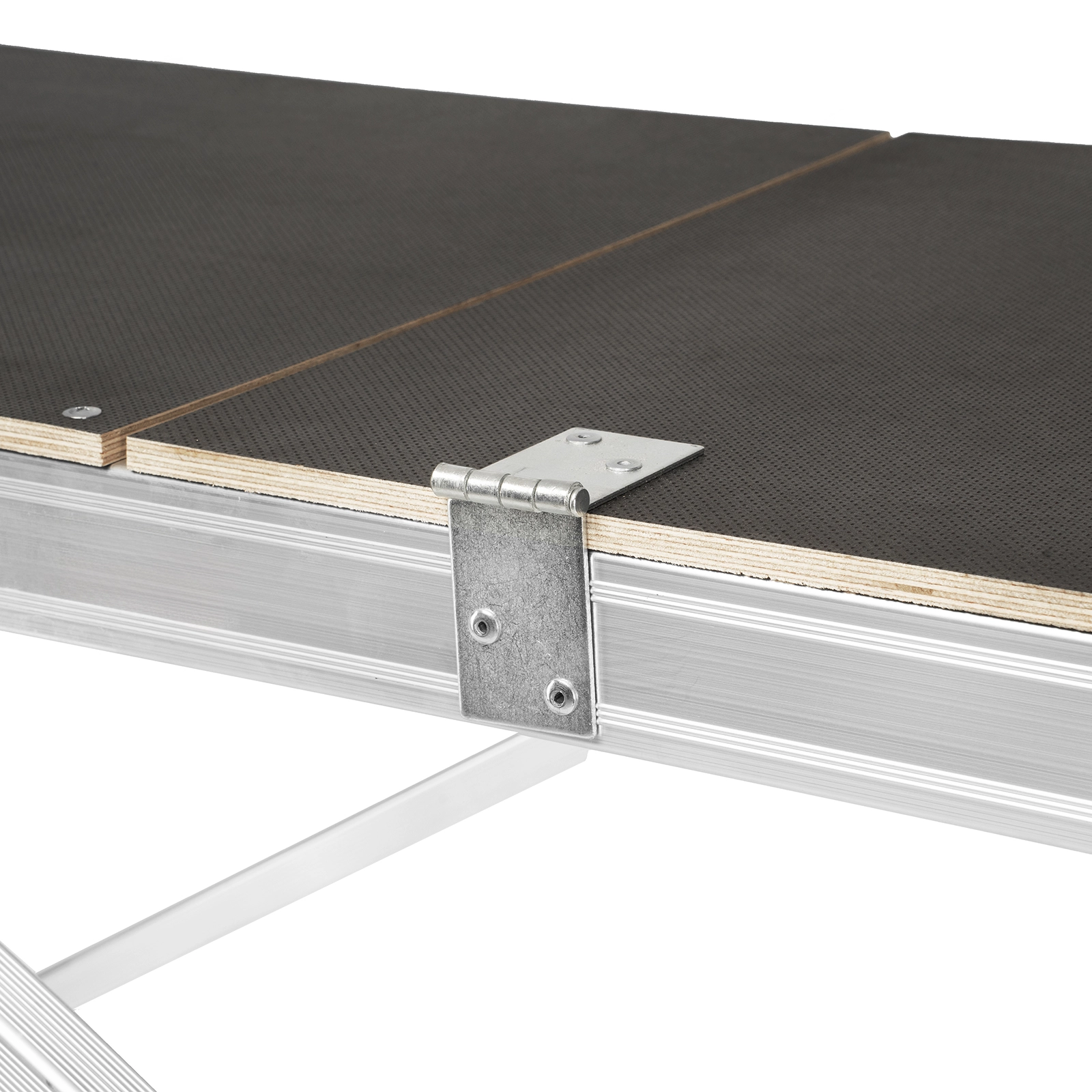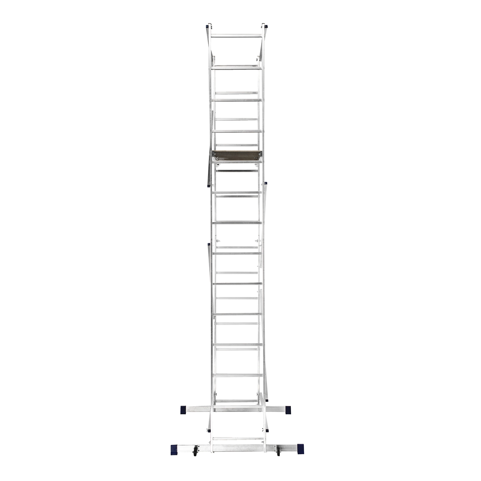 Помост можно фиксировать на разных уровнях стоек, что удобно при установке конструкции на лестничных пролетах и других наклонных поверхностях.